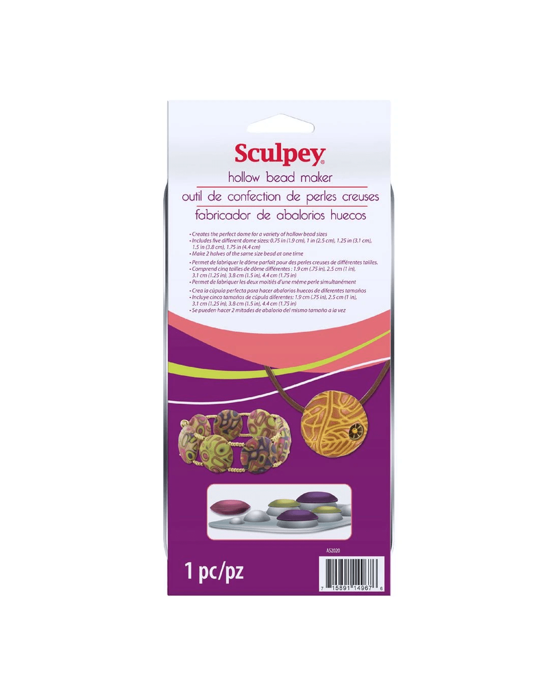 The Sculpey Hollow Bead Maker contains 5 different dome sizes so you can create hollow beads. Using this tool you can make 2 halves of the same size bead at a time for efficient jewellery making.