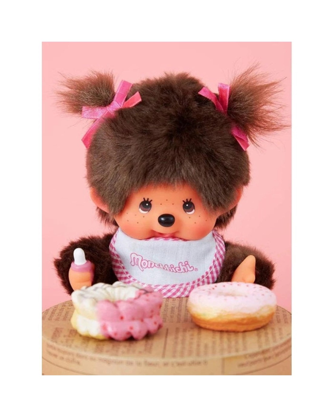 This Monchhichi Classic Plush Toy is wearing a cute pink and white bib with pink bows in her hair. Made of premium quality materials, the soft body and plastic head, hands and feet are perfect for both cuddles and going on adventures. This Monchhichi Classic Plush Toy can always be dressed up with different outfits making it one of the most stylish dolls around! Besides being the perfect companion, this Sekiguchi Monchhichi makes the ideal gift for collectors and fans everywhere! Ages 2 +