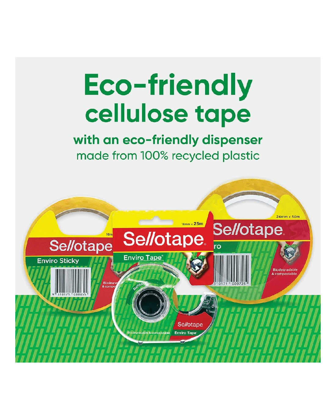 This Sellotape Enviro Tape is a great option for all your adherence needs. This 24 mm wide clear roll is great for gift wrapping and sealing lightweight items. Plus, it's non-static for added peace of mind.