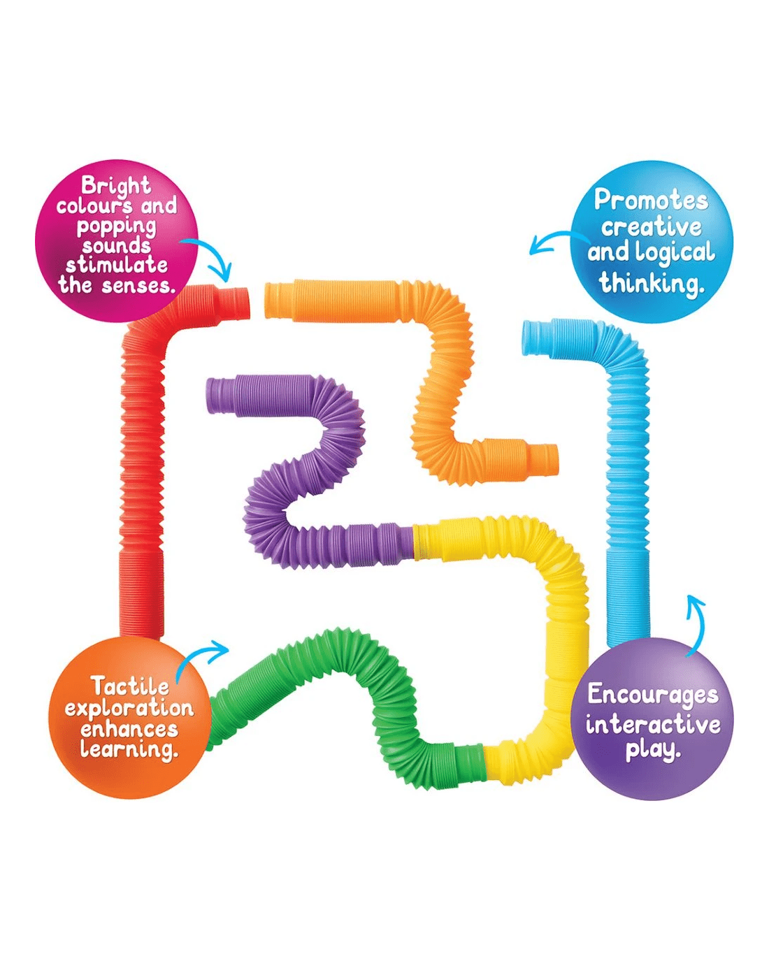 - This set contains 6 x Sensory Rainbow Pop Tubes.
