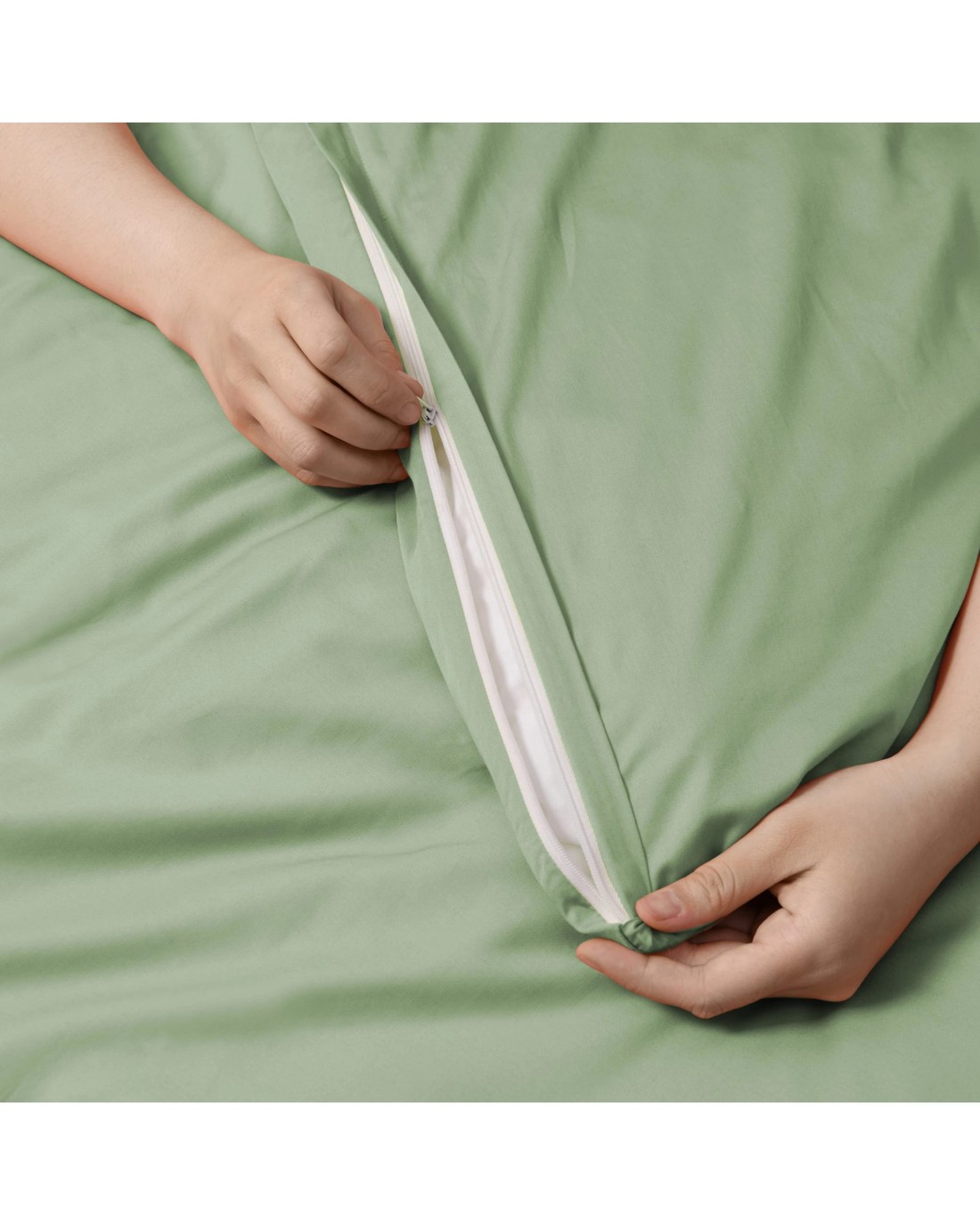 Serene 400TC Bamboo Cotton Sateen Quilt Cover Set - Queen Bed - Sage
