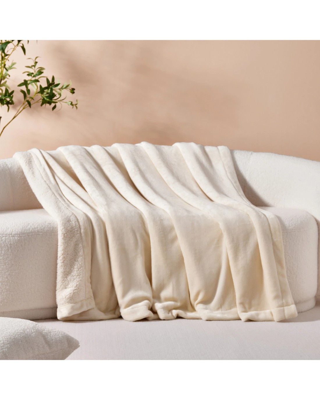 Sold by DI HomeSerene Hudson Fleece and Sherpa Reverse Throw Blanket 130x170cm - Cream