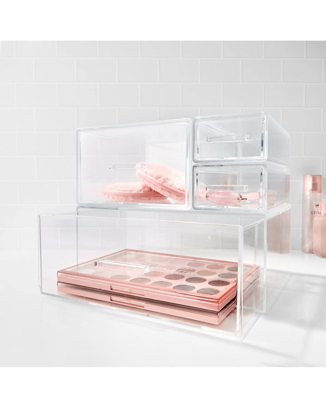 Store your makeup essentials and bathroom accessories neatly and conveniently in this Set of Four Modular Drawer Organisers.
