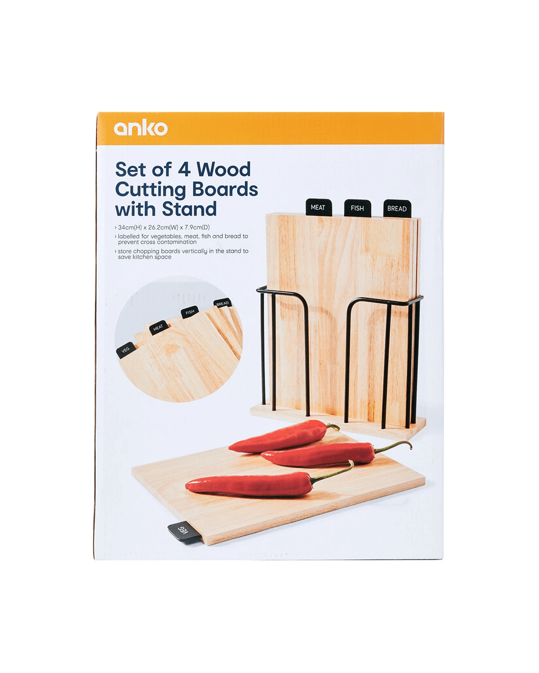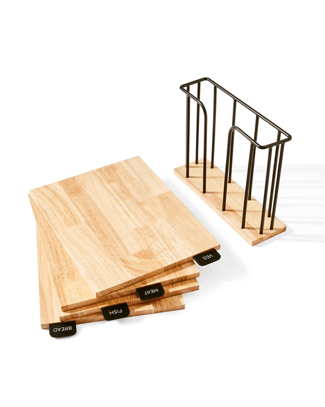 Set of 4 Wood Cutting Boards with Stand