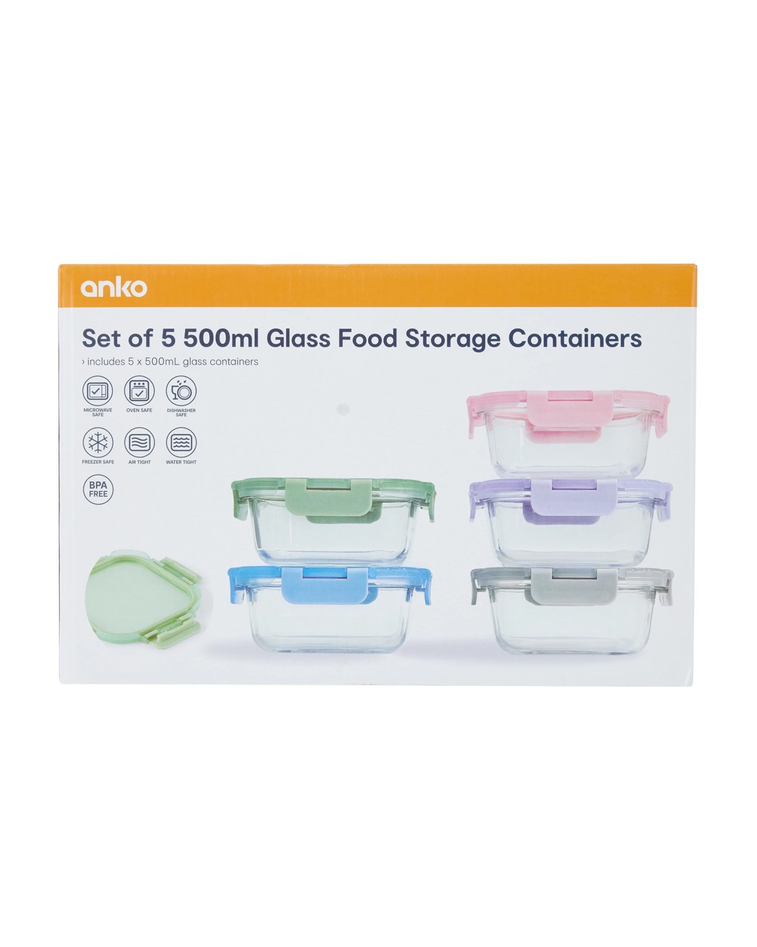 Sold by KmartSet of 5 500ml Glass Food Storage Containers