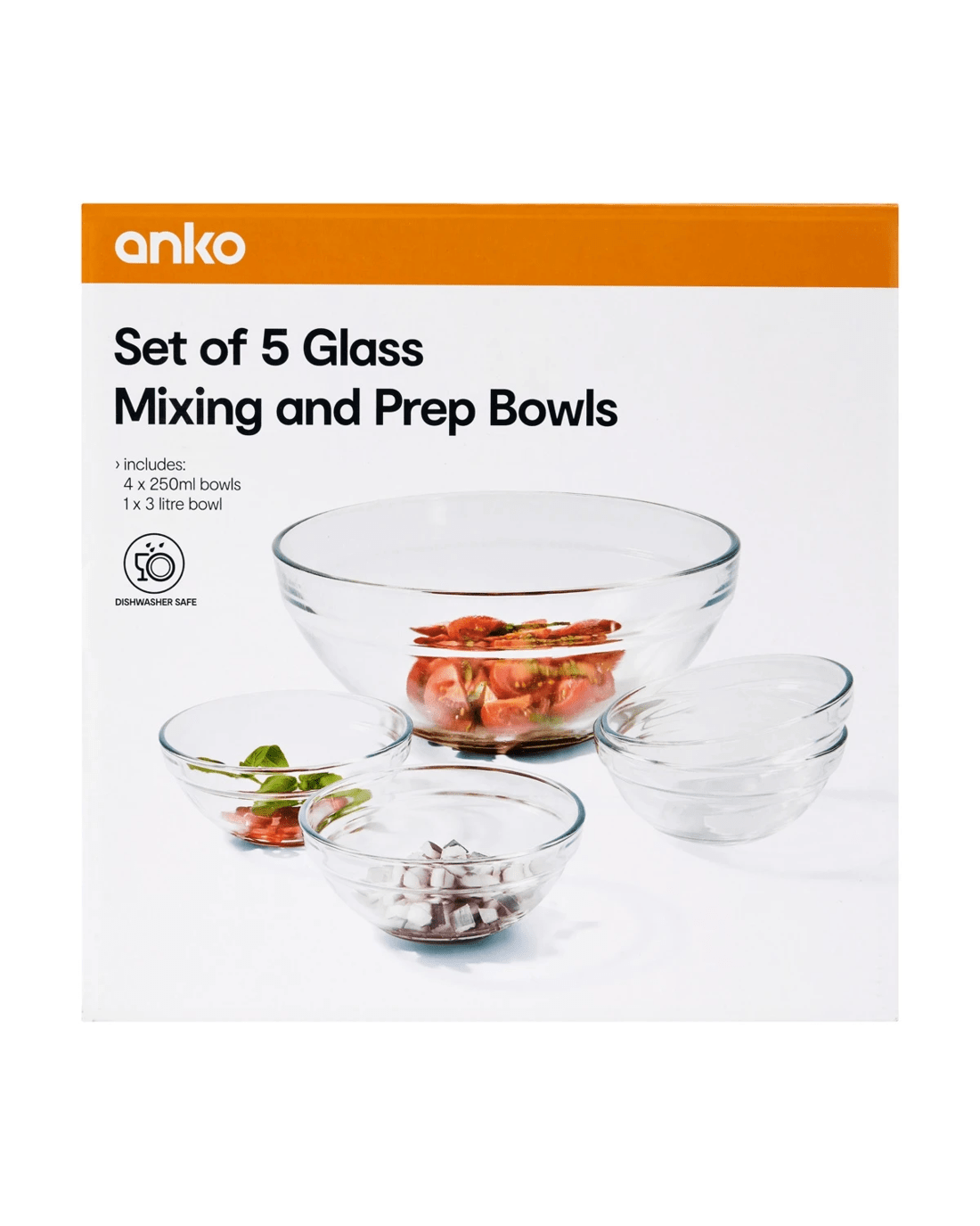 Set of 5 Glass Mixing and Prep Bowls
