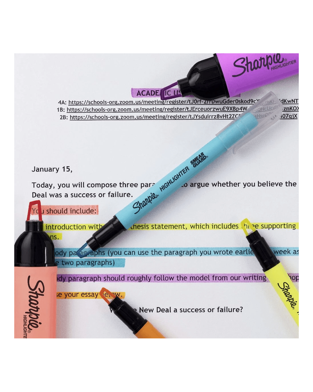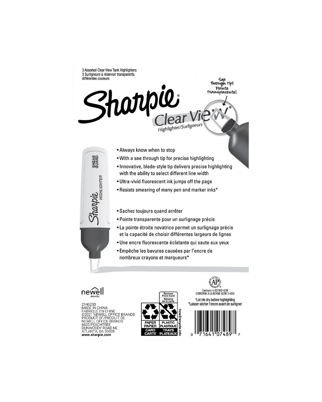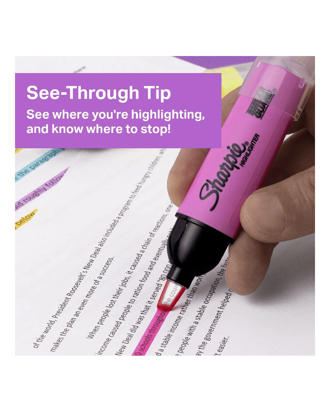 These Sharpie Clear View Highlighters feature a clear tip so you can see exactly where you're highlighting. Each marker contains vivid, fluorescent ink to stand out on the page, allowing you to draw attention to specific areas of text or diagrams.