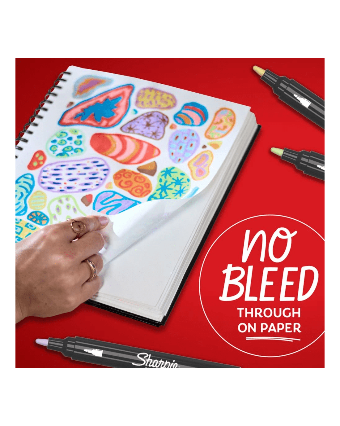 These Sharpie Creative Markers are the perfect way to bring your creative vision to life. These acrylic markers feature stunning paint-like ink that glides across the page with the control of a marker, but use a water-based formula that won't bleed through paper so your work stays clean. The bright colour markers create vibrant marks on light and dark surfaces and boldly mark on paper, metal, wood, ceramic, glass, rock, and canvas. The colours beautifully layer to add dimension to your work.