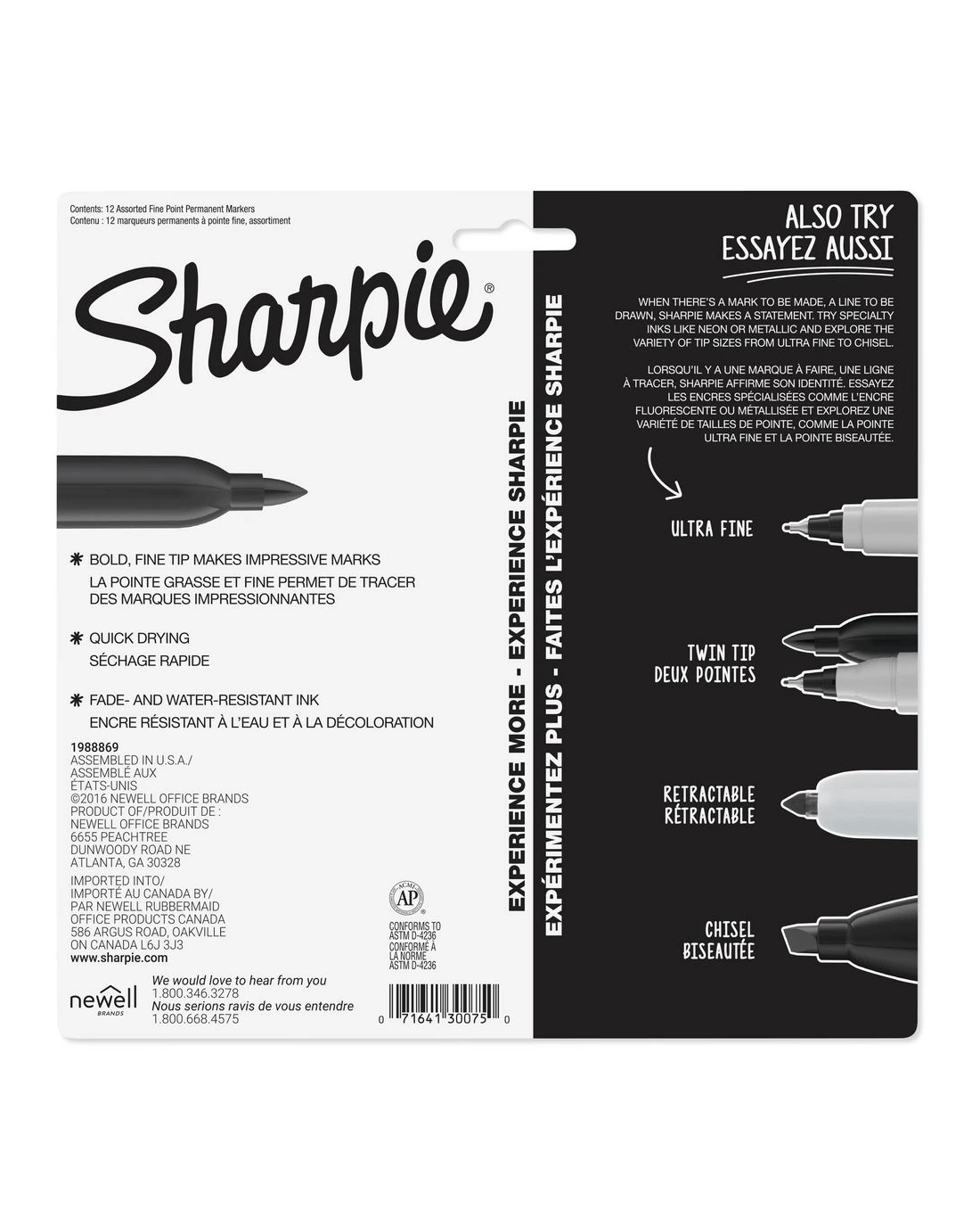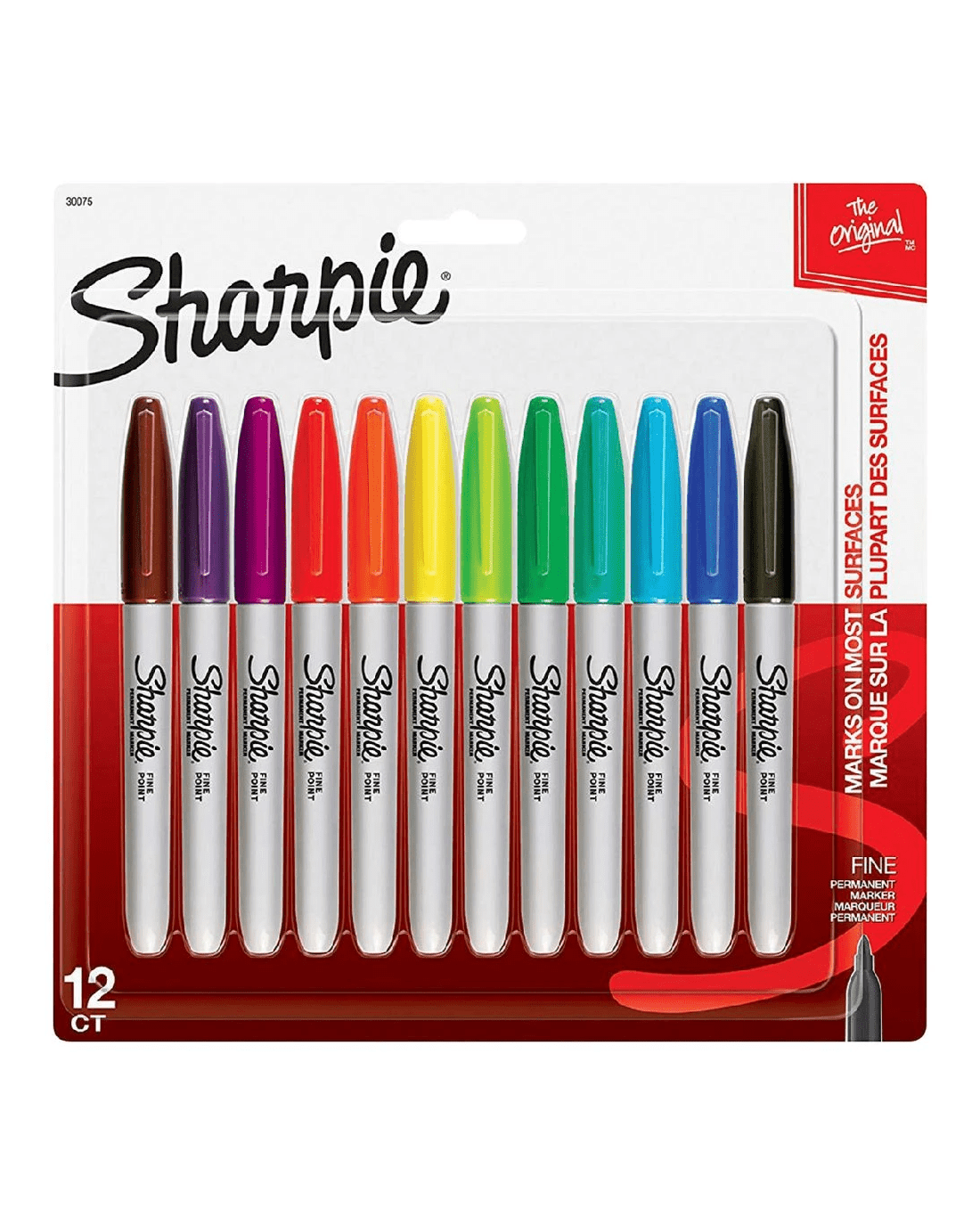 These Sharpie Permanent Markers contain fade and water-resistant ink and will leave permanent markings on almost all non-porous surfaces. The fine point makes each marker a versatile option for the classroom, home or in the workspace, helping you to make creative statements.