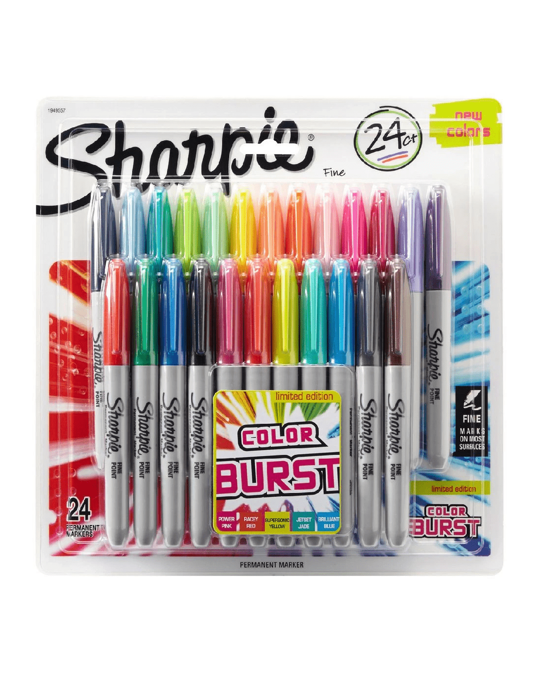 - This pack contains 24 markers; with 5 Colour Burst colours and 19 Classic Sharpie colours.