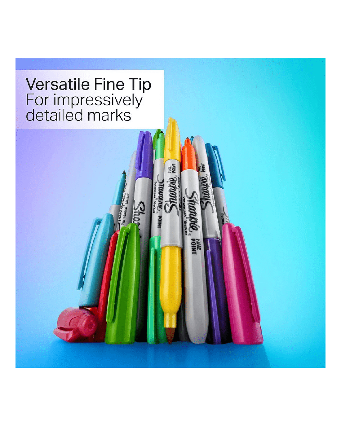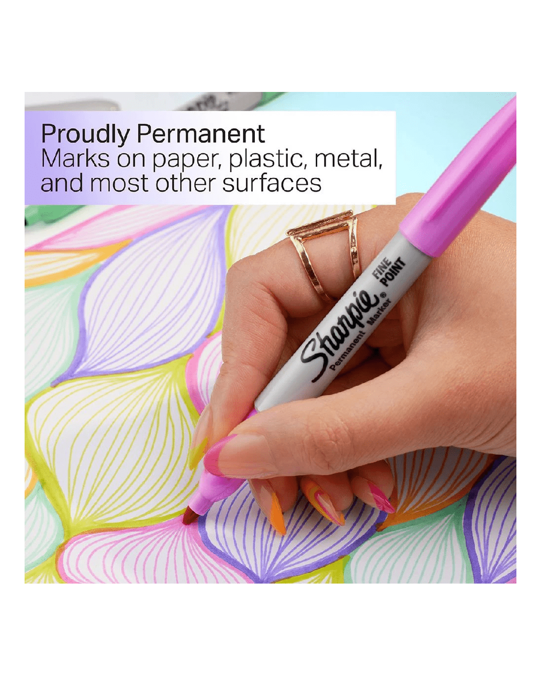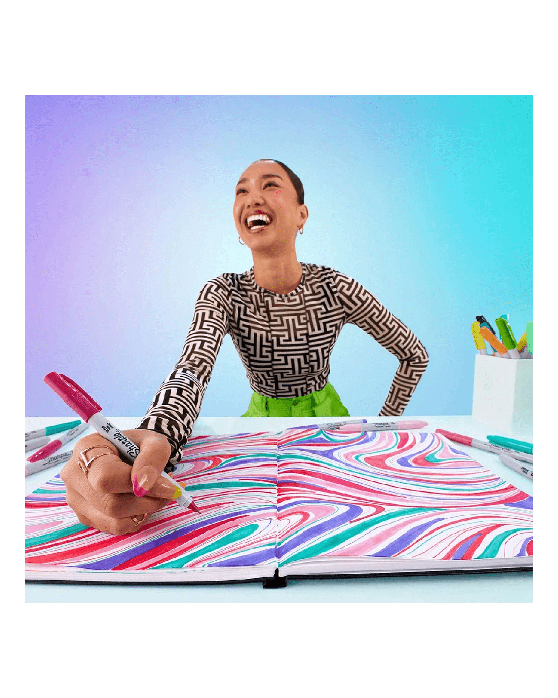 Sharpie Fine Markers allow you to draw detailed lines on surfaces such as paper, plastic, glass, wood and leather. Each of the Glam Pop markers are water, smear and fade-resistant and are AP Certified non-toxic. The bright Glam Pop colours are the perfect way to transform ordinary surfaces into eye-catching, passionate creative statements.