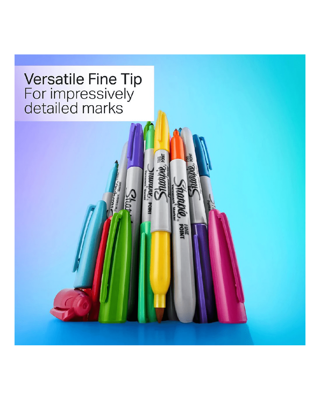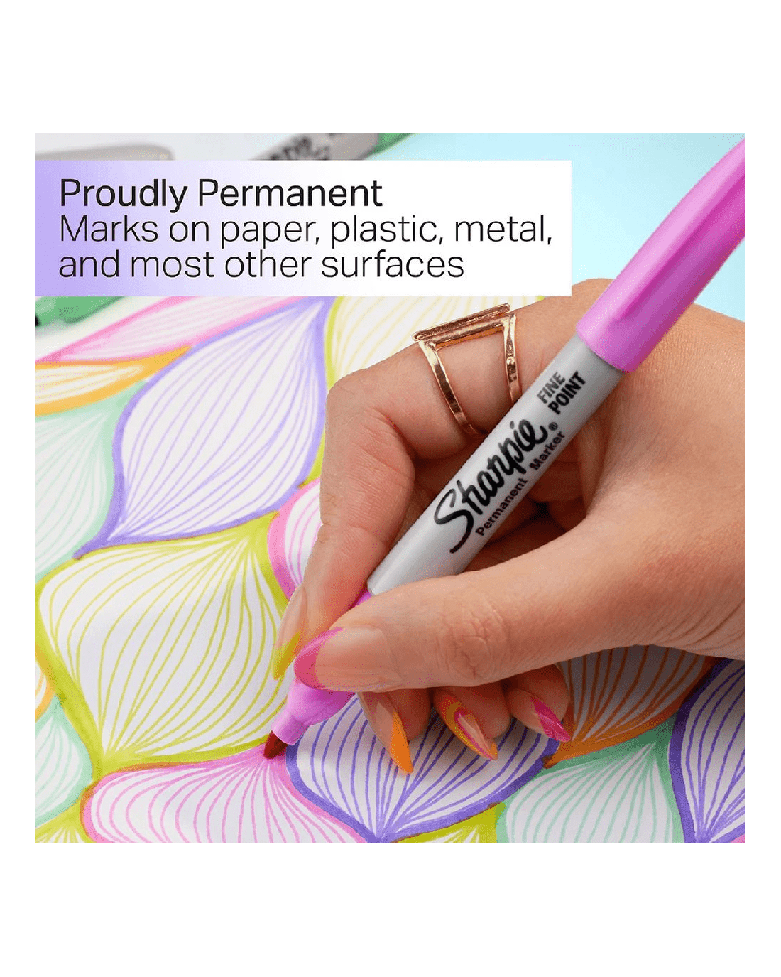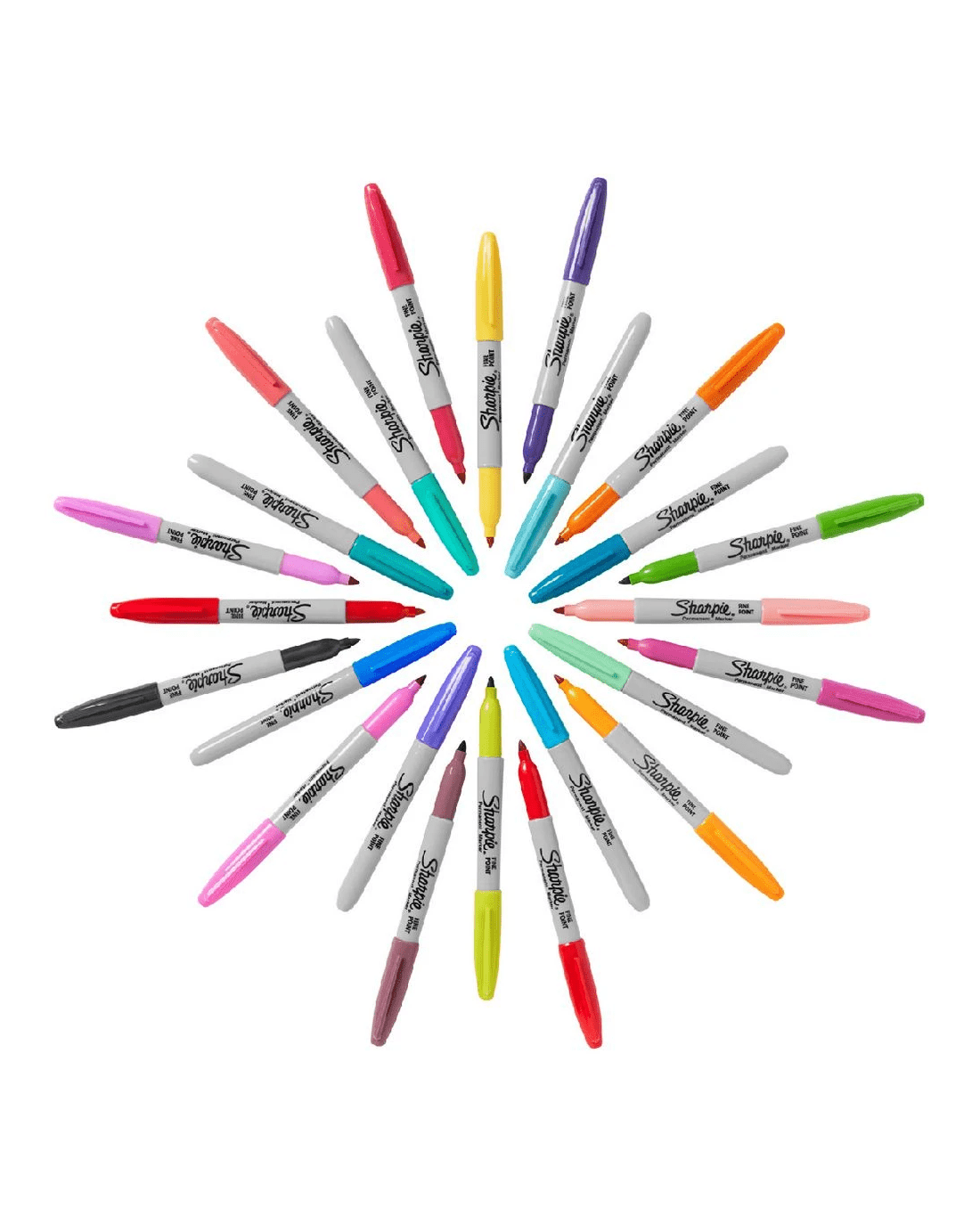 Sharpie Fine Markers allow you to draw detailed lines on surfaces such as paper, plastic, glass, wood and leather. Each of the Glam Pop markers are water, smear and fade-resistant and are AP Certified non-toxic.