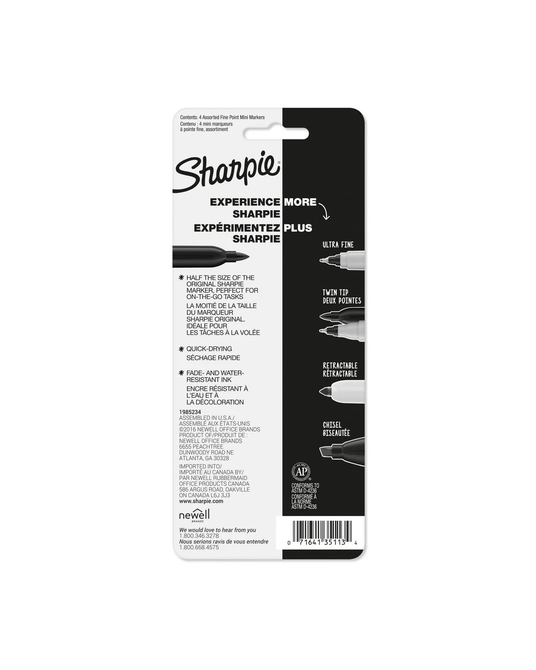 - The quick-drying ink is water and fade resistant.
