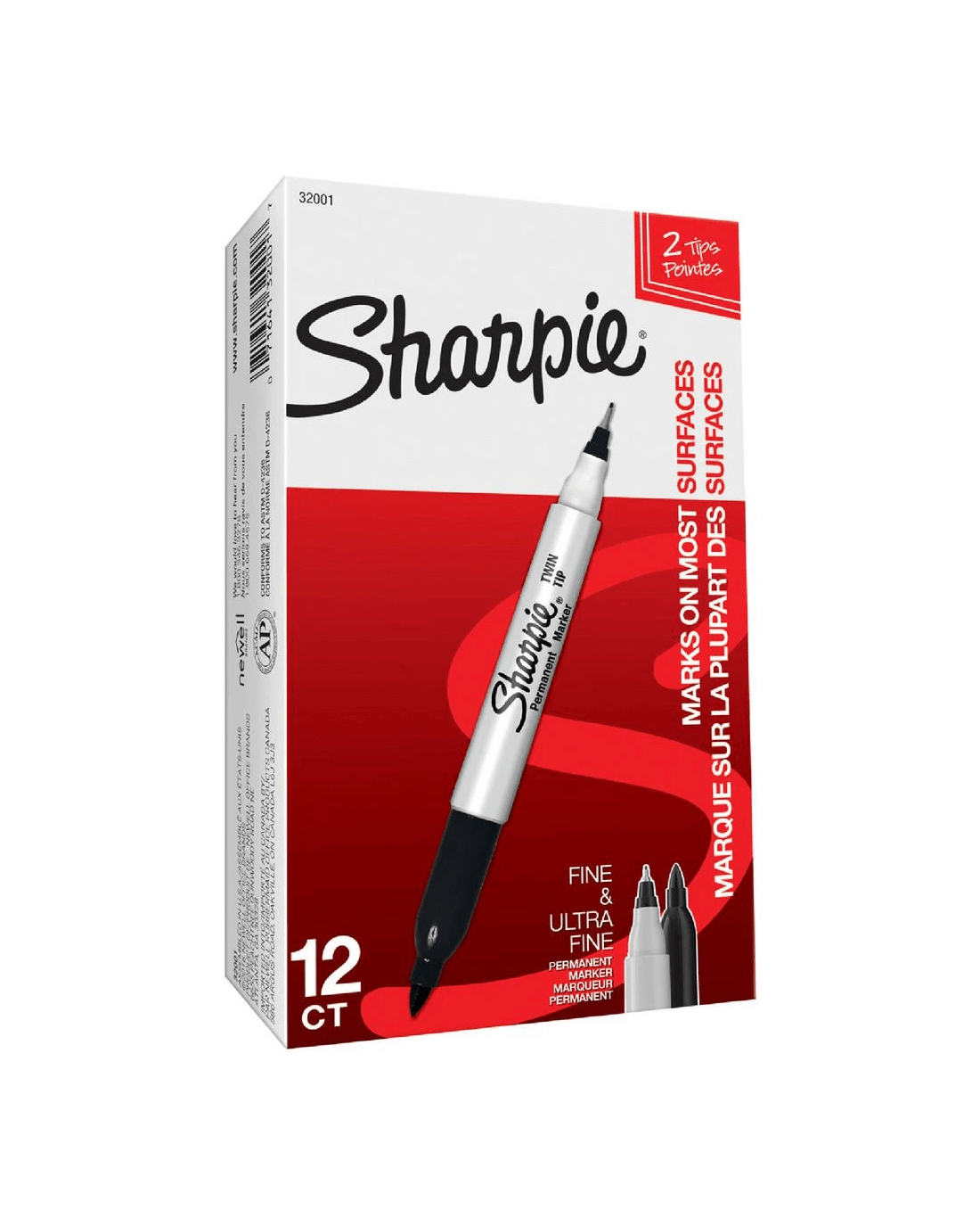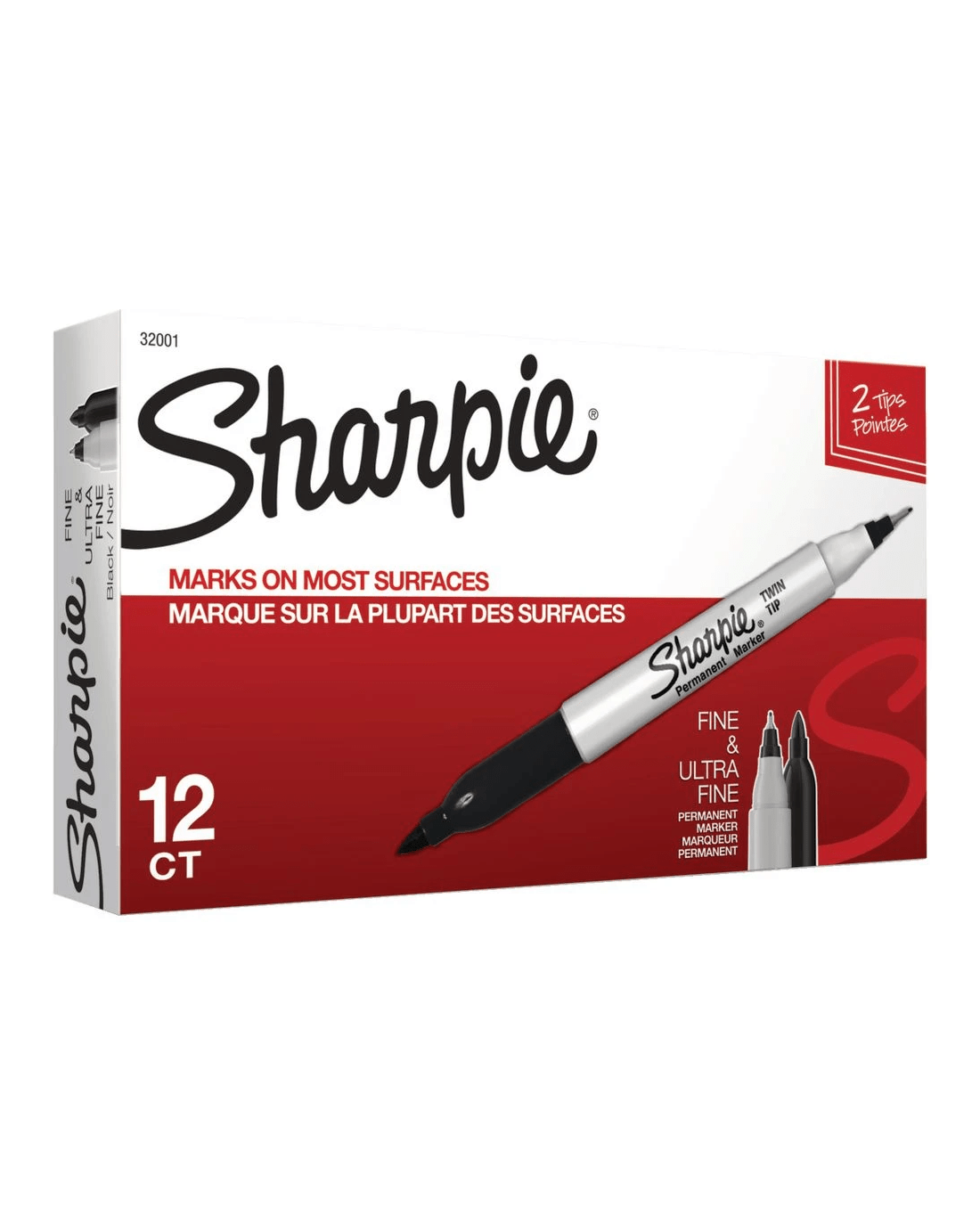Each Sharpie Twin Tip Permanent Marker comes with both a fine nib and an ultra fine nib, allowing you to mark in different line widths whenever you like. The ink is quick drying and permanent on most surfaces so you can use it to mark and label items at home, in a mailroom, around the warehouse, at school or almost anywhere.