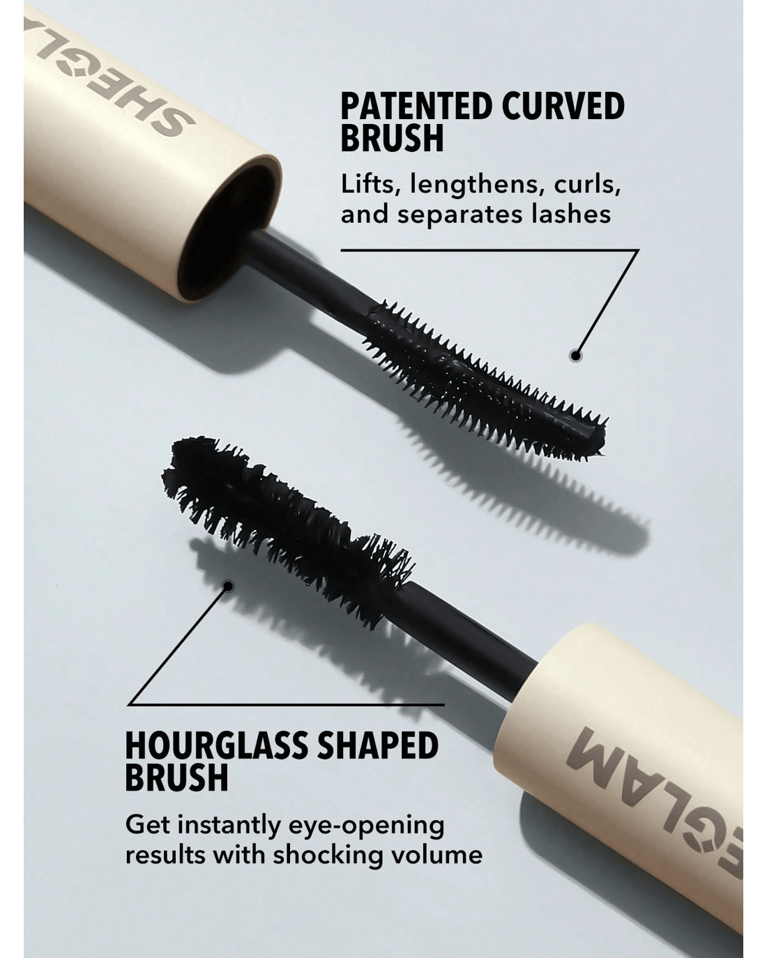 - Hourglass-shaped brush: Get instantly eye-opening results with shocking volume