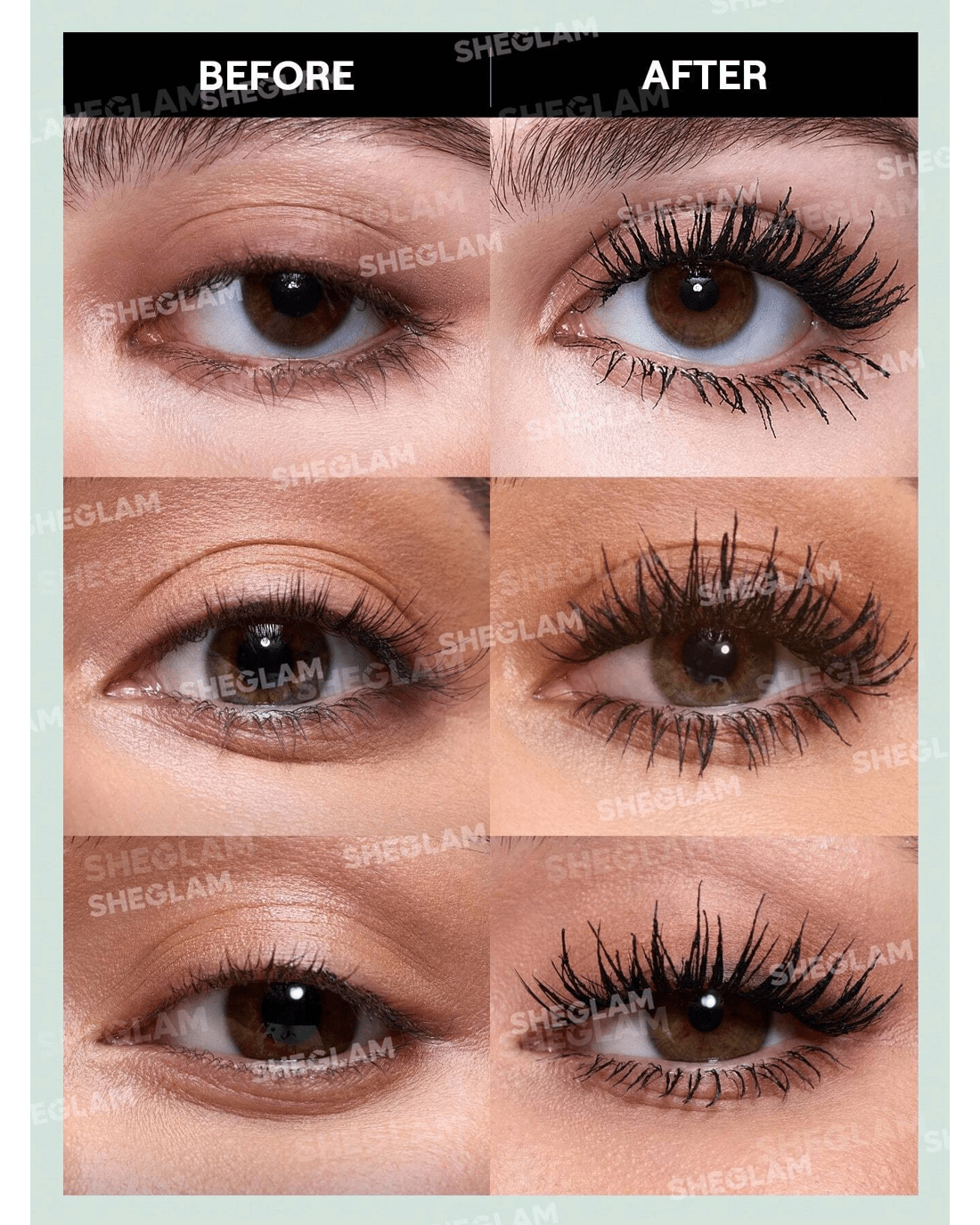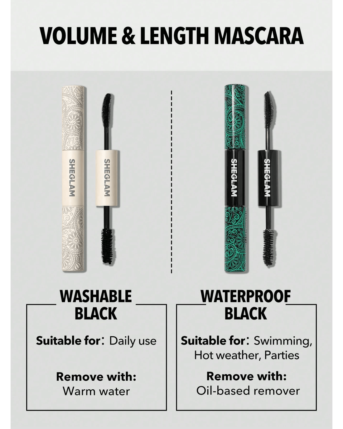 SHEGLAM All-in-One Volume & Length Mascara features a dual-ended brush with two different quick-drying, smudgeproof, yet washable formulas. Apply together or separately for a totally custom, clump-free look that delivers intense volume, length, curl and separation!