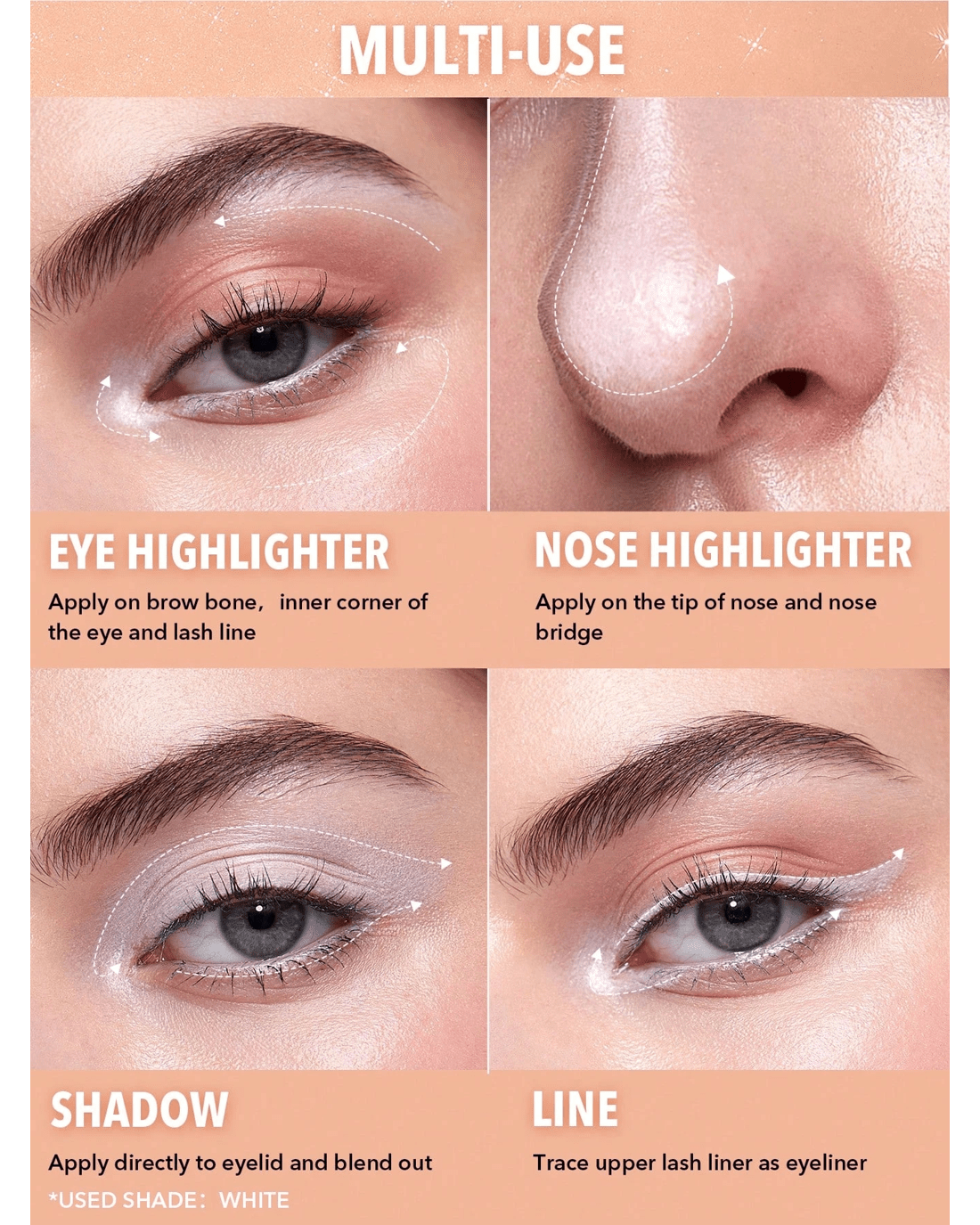 • 2-in-1 Shadow + Highlighter: Create radiant lids, brighten the inner corners, or lift the brow bone - all with one pencil