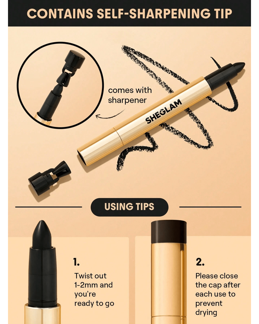 - Built-in sharpener: Hidden tool keeps your liner precise and ready for on-the-go touch-ups