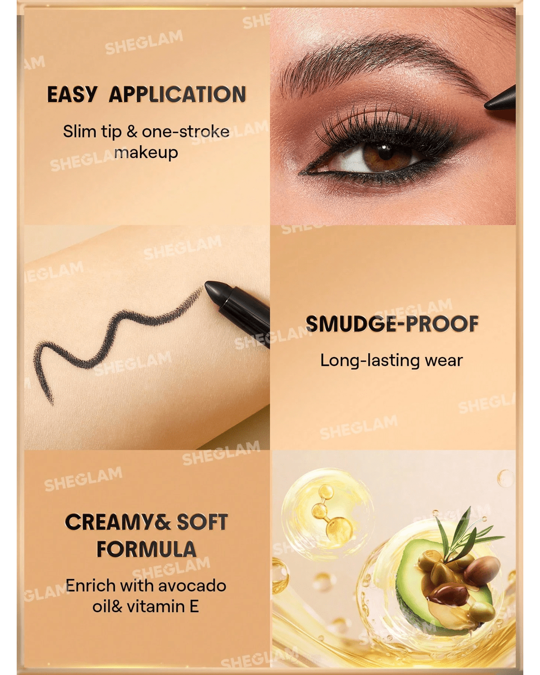 Create the most satisfying flicks with SHEGLAM's Bold Moves Kohl Cream Eyeliner Pencil. This silky, smooth cream eyeliner formula is designed to glide easily, making everything from precise wings to sultry smudges a breeze. Pop open the hidden sharpener at the bottom to keep your liner on point and your smokey eye on slay. As an added bonus, we've incorporated vitamin E derivative into this long-lasting liner to help soothe the skin around eyes along with kohl for rich colour-payoff.