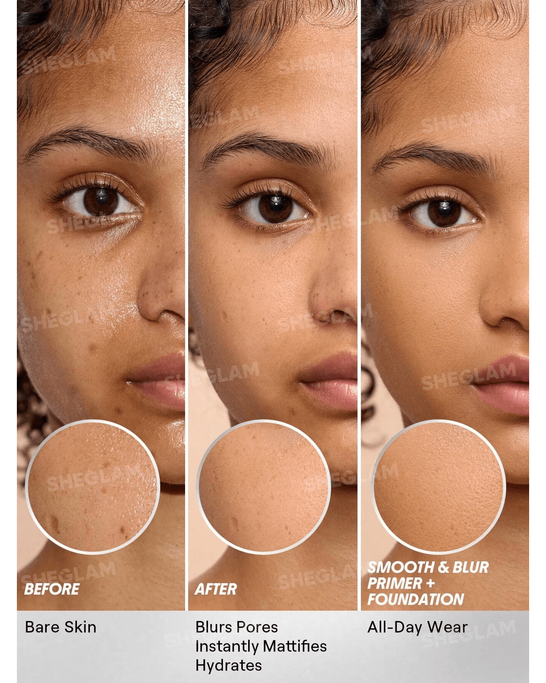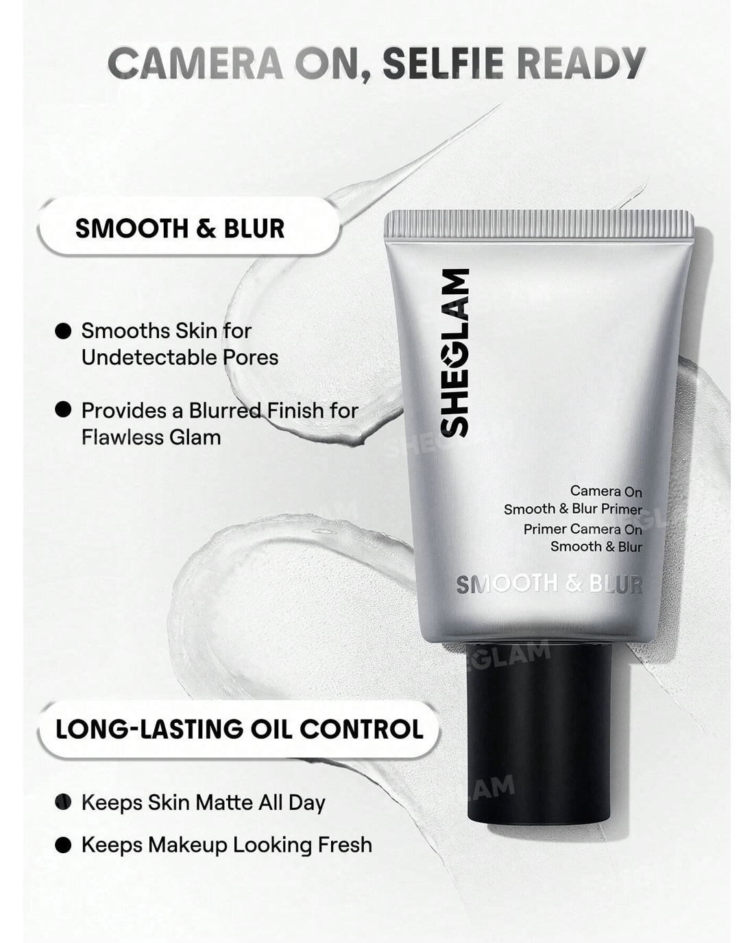 Say goodbye to visible pores and hello to a smooth, seamless base. SHEGLAM's Camera On Smooth & Blur Primer creates a soft-focus blur that minimises texture and helps your foundation actually stick around. Infused with skin-loving ingredients like vitamin B12 and vitamin E, think of it as your real-life beauty filter, with skin benefits baked in!