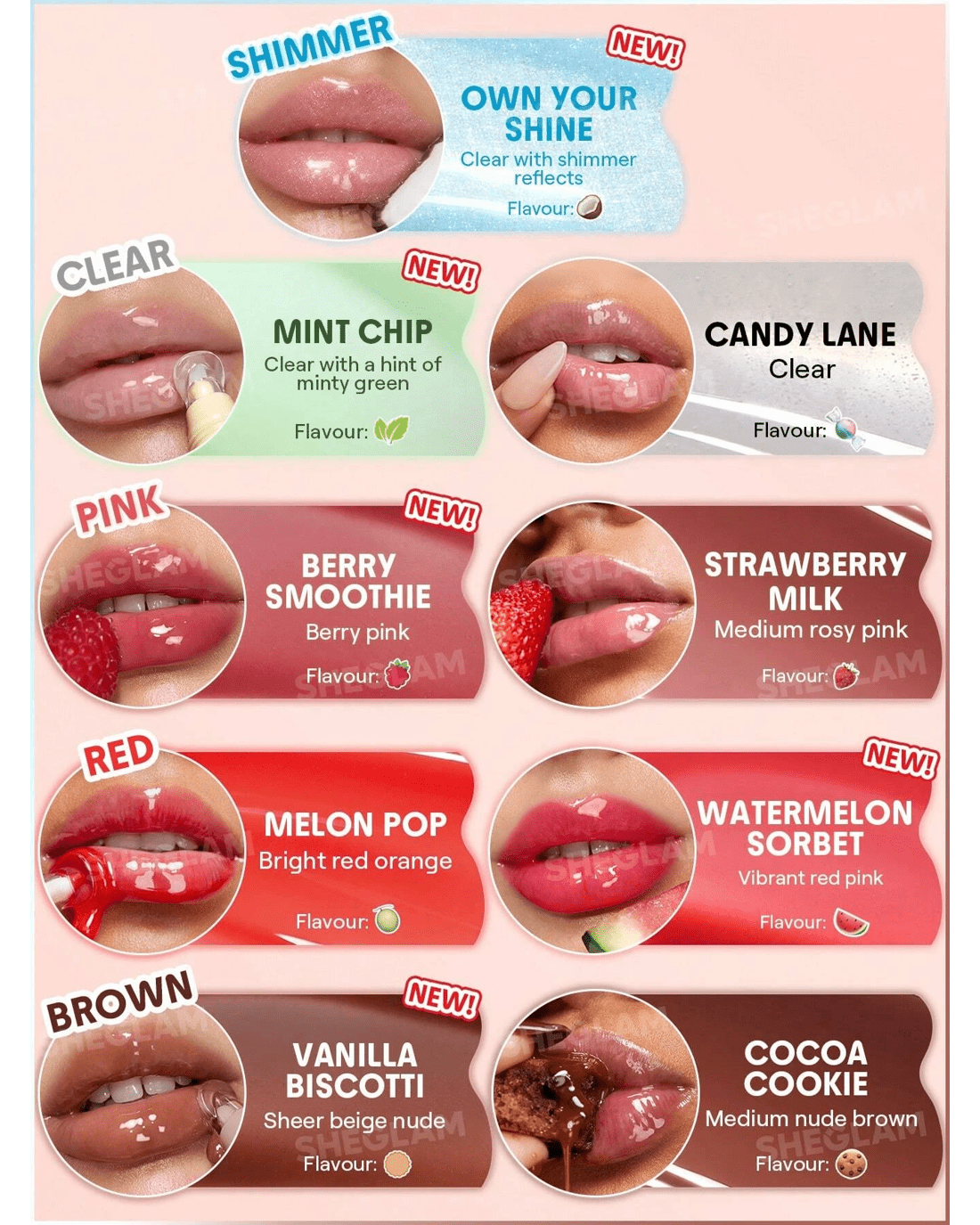 Pamper your pout with a formula that hydrates, shines and smells as sweet as it looks - SHEGLAM Crystal Glaze Moisturising Lip Care is your new daily lip obsession.