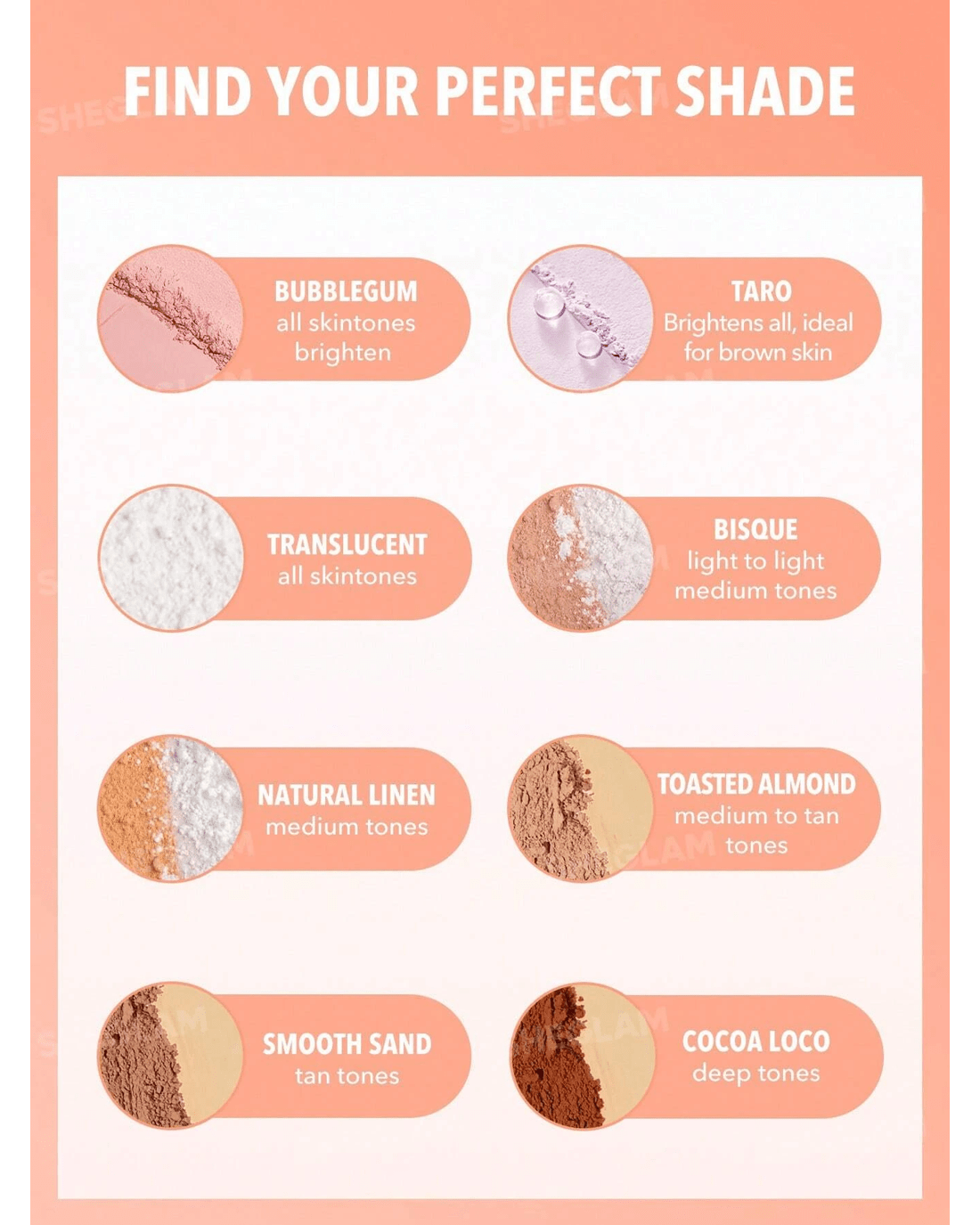 - Shine-control loose powder: Lightweight, oil-absorbing formula keeps your complexion matte, fresh and camera-ready all day