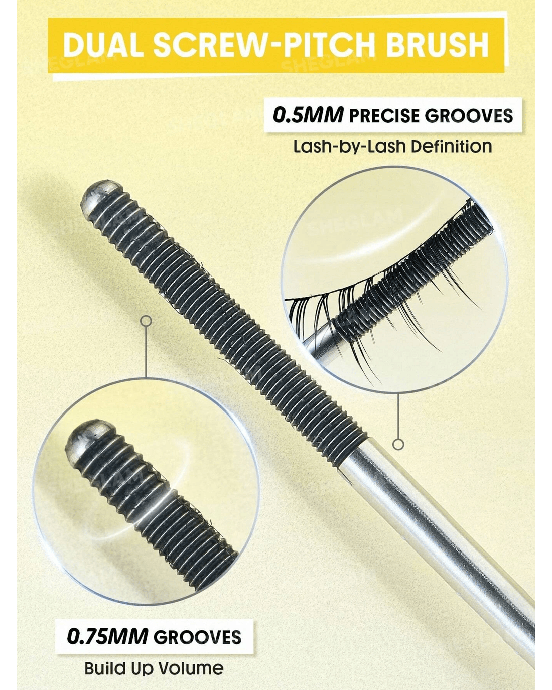 • Dual screw-pitch brush: Two groove types work together - 0.75mm grooves build volume while 0.5mm grooves define each lash with precision