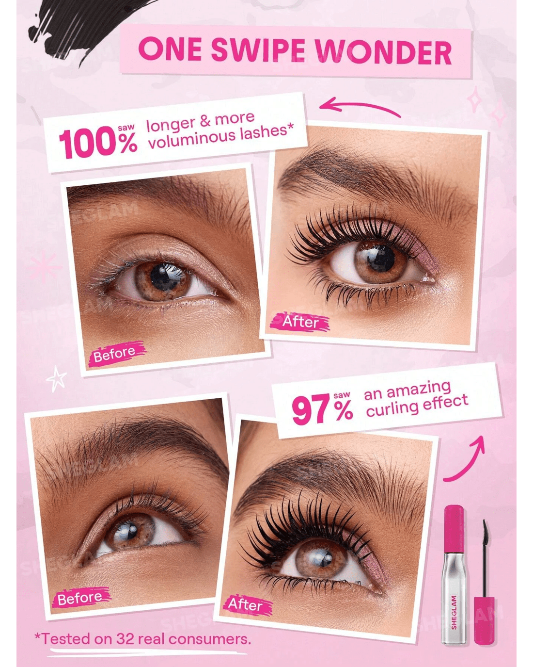 • Lift & lengthen effect: Instantly lifts lashes for a brighter, more open-eyed look