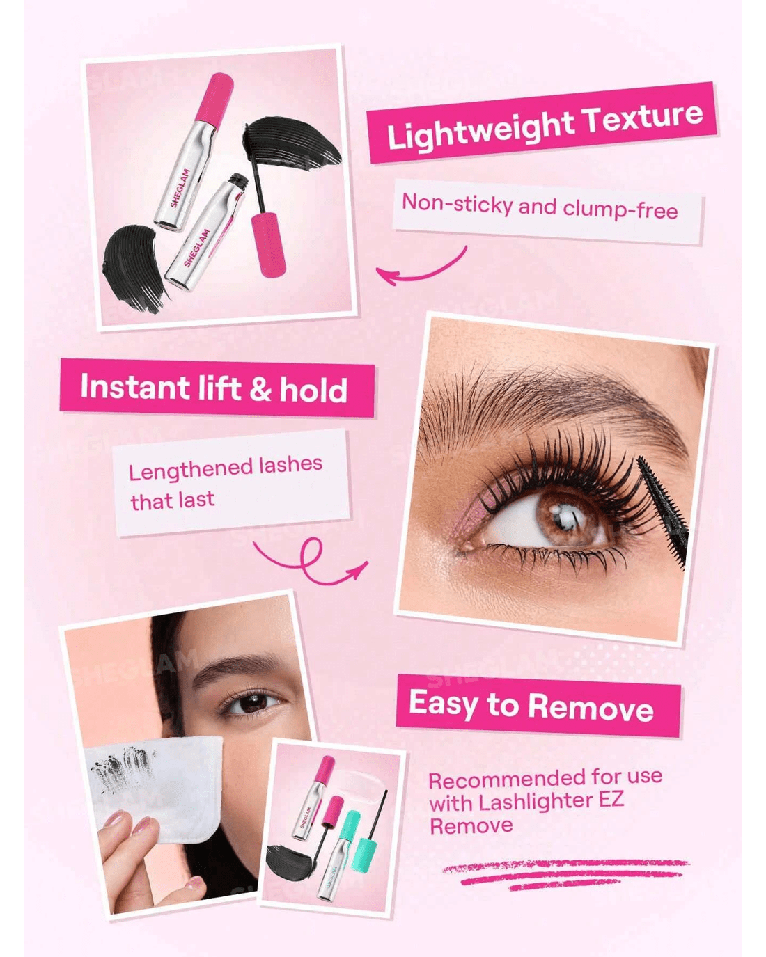 Lift, lengthen and brighten your lash game with the SHEGLAM Lashlighter Up & Out Mascara - your all-in-one essential for wide-eyed, fluttery definition. Designed to elevate your everyday look, this lash-loving formula delivers instant lift and separation in just one swipe. Get ready for lifted, luminous lashes that do the most - with zero effort required.