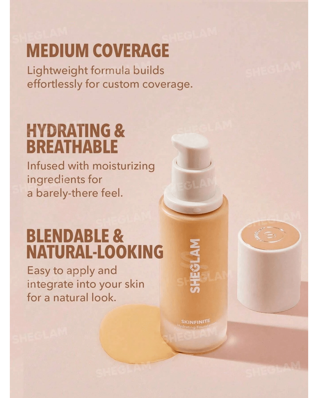 Get ready for skinfinite possibilities with SHEGLAM's Skinfinite Hydrating Foundation that is creamy, medium coverage foundation and designed to mimic the natural look of your skin, but sub in extra hydration and a gorgeous glow. Say buh-bye to cakey, pore-clogging foundations of the past, this advanced formula is ultra-lightweight, blendable and breathable for a barely-there feel.