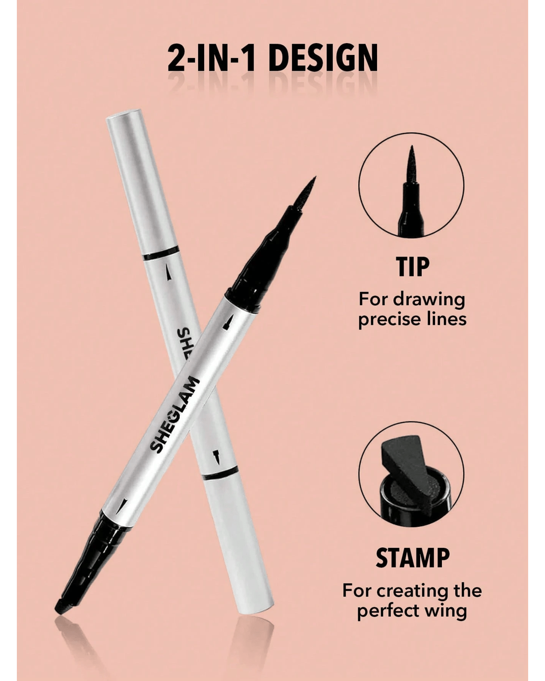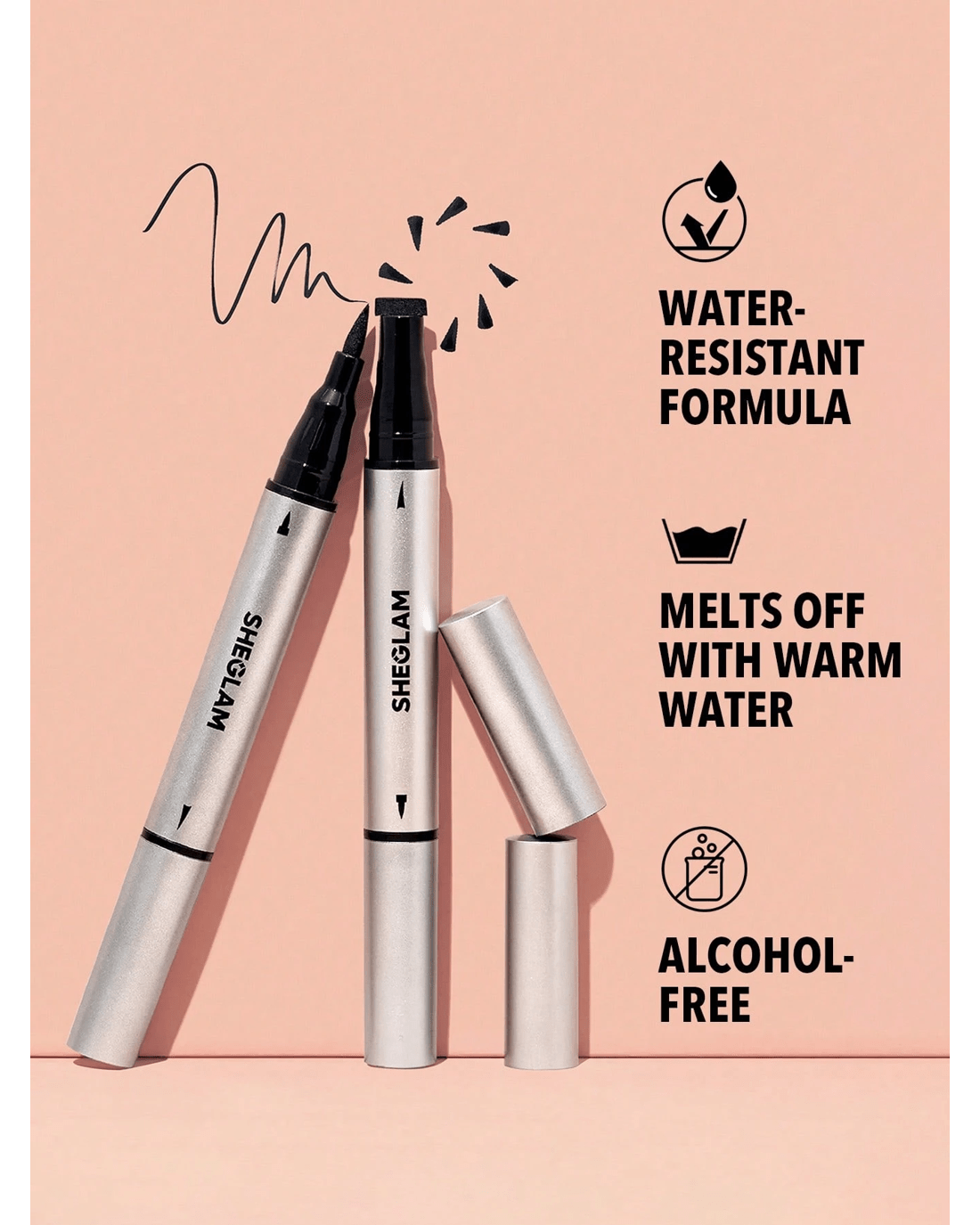 Create the perfect flick every time with the SHEGLAM Wing It Waterproof Liner Duo in Black—your ultimate shortcut to sharp, symmetrical winged liner with zero guesswork. This double-ended hero combines precision and ease for flawless eye definition in seconds.