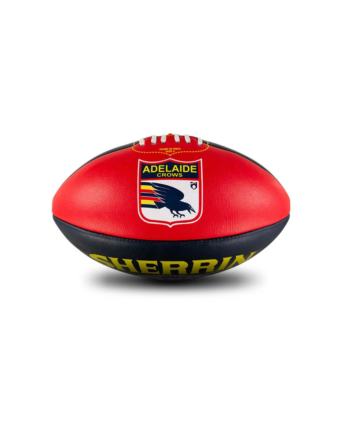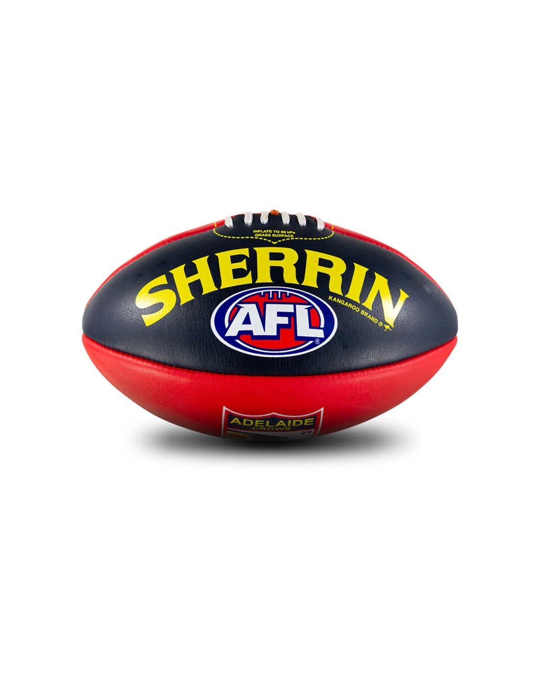 The Sherrin AFL Team Leather Football is designed for supporters of the Adelaide Crows who enjoy practicing or playing Australian rules football. Crafted from full grain leather, this football combines durability with a traditional feel, making it ideal for training and casual play on grass surfaces.
