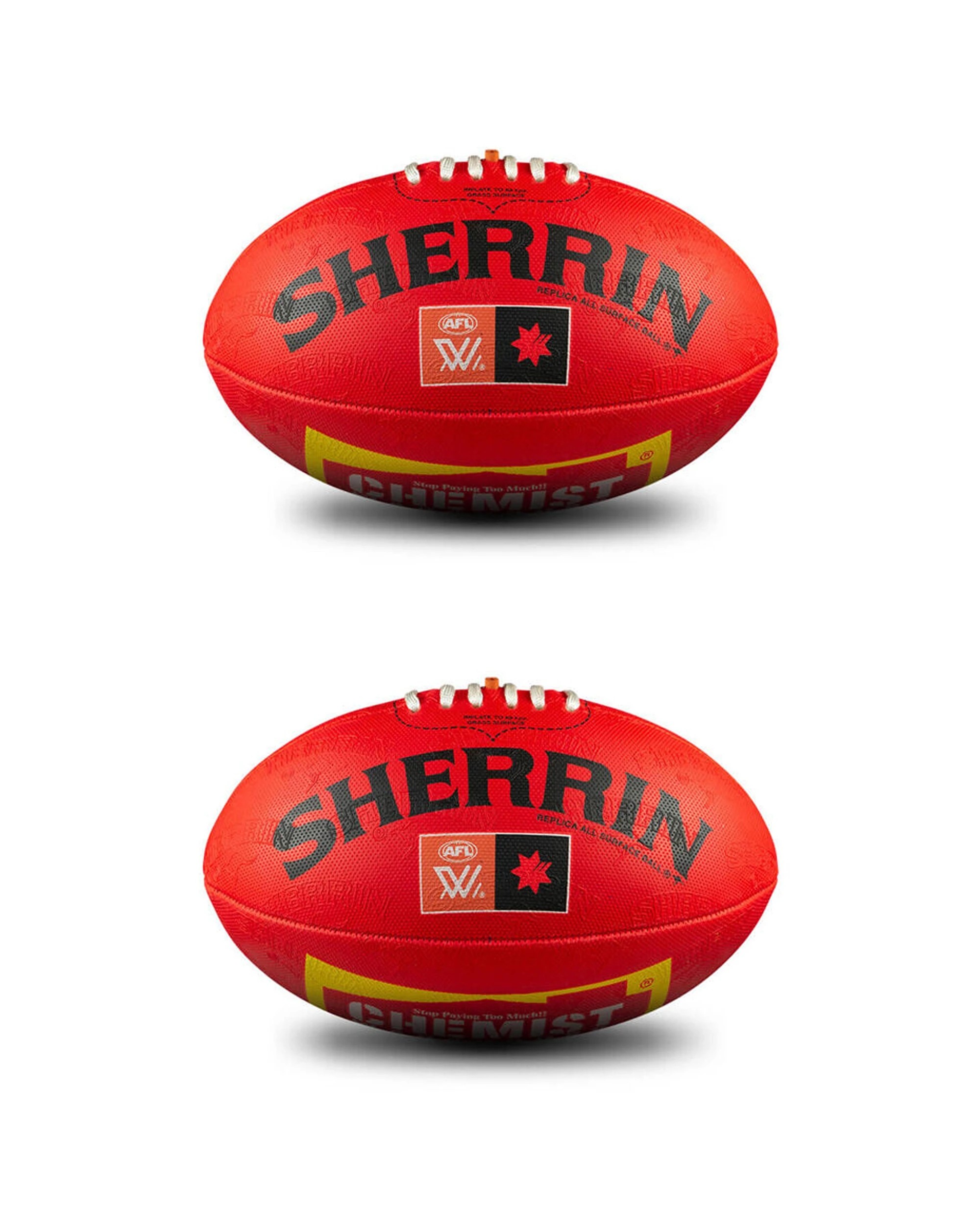 Sherrin AFLW Replica All Surface Synthetic Rubber Football 2 Pack Size 4 - Red