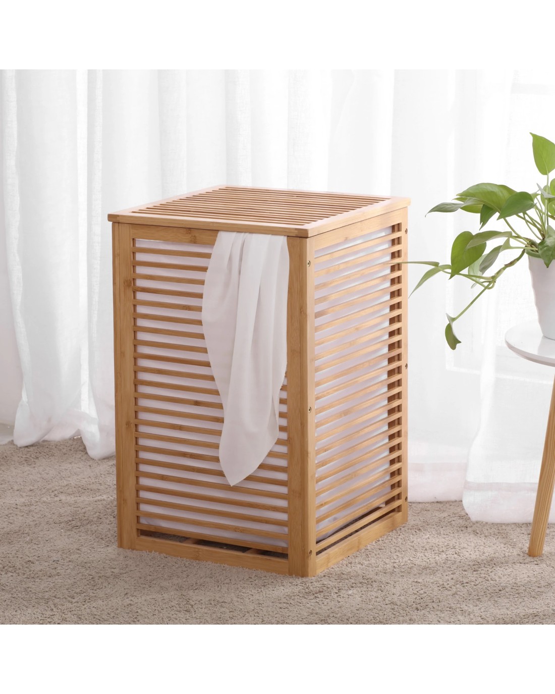 Sherwood Home Foldable Bamboo Laundry with Lid Large 38.8x38.8x58cm - Natural