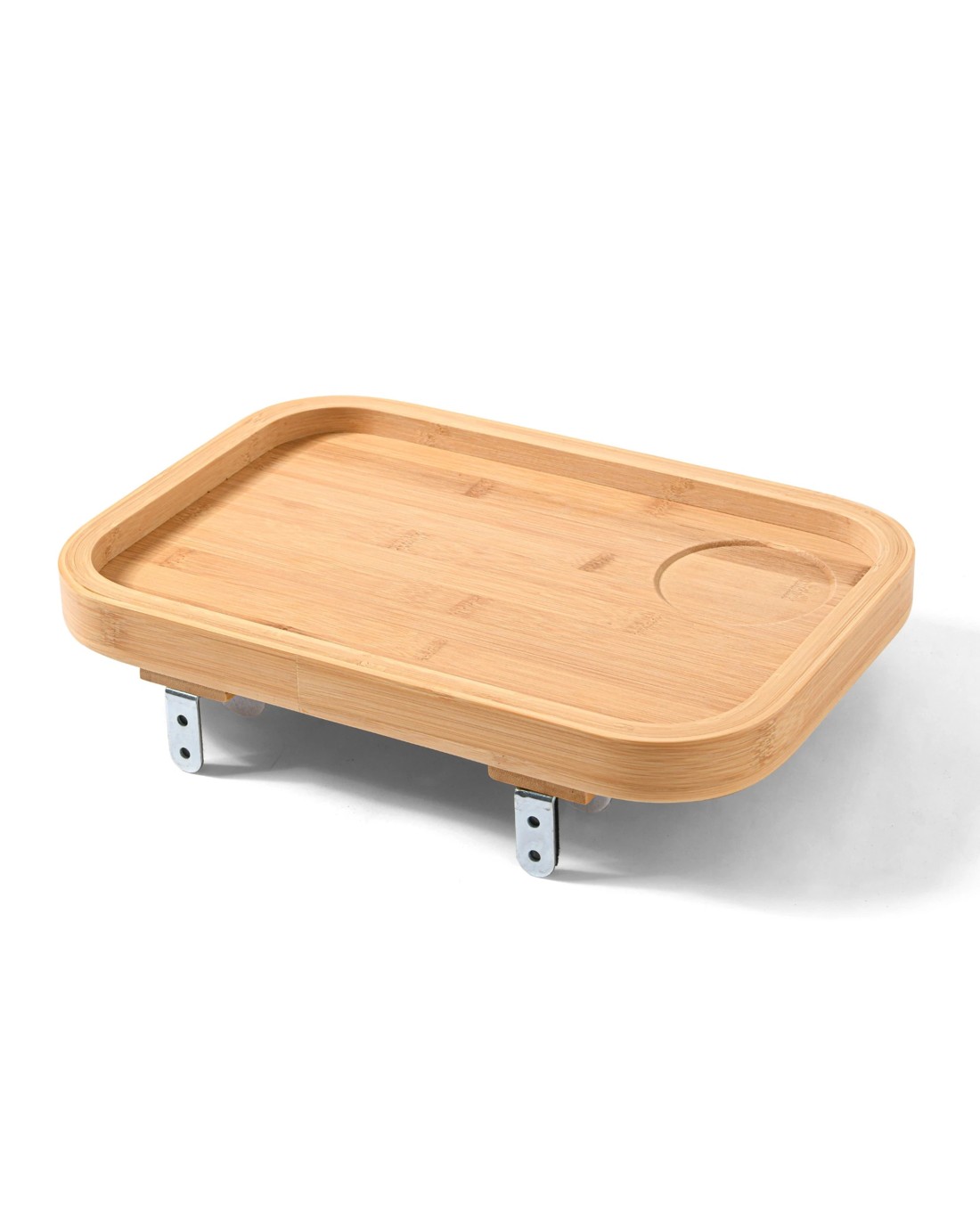 • Functions as a bedside table or floating tray that can attach to either side of the bed.