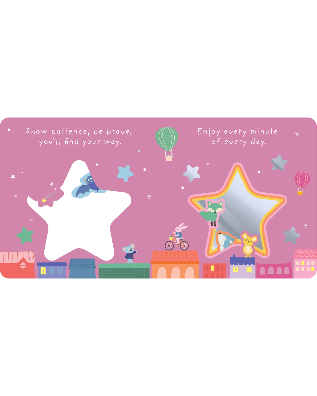 This charming board book is designed to be enjoyed during cosy reading time between little ones and their caregivers. The sweet rhyming text encourages children to aim high with the reassuring message that someone loving will always be there to support them. Little ones will be captivated by sweet illustrations of animal friends admiring the stars. Graduating die-cuts lead to a mirror on the final spread to reflect the real star of the story - the little one themselves.