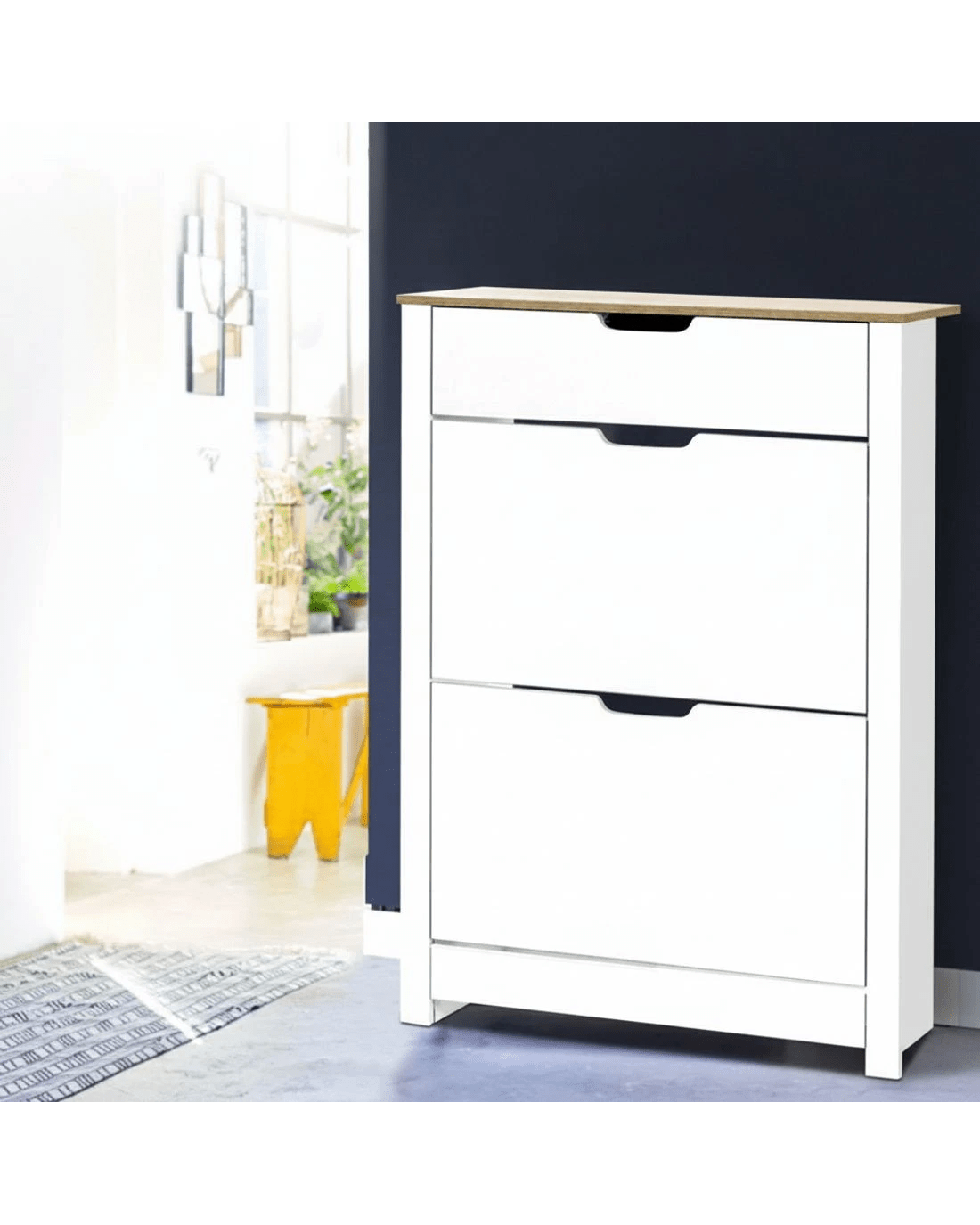 You are shoe proud. That is why you need ample space for all that wonderful footwear. Organise and save your floor space with our contemporary Artiss Shoe Cabinet and have a clutter-free entrance at all times. Designed with four tiers of storage and an adjustable shelf in each of the two compartments, the shoe cabinet can fit in different footwear of all shapes and sizes. In fact, up to 16 of your favourite pairs would fit comfortably in it. Making it effortless to get and easy to put back everytime after used. On top, you also get a large storage drawer for nick knacks such as sunglasses, keys and socks. Made of 15mm thick particle board, the shoe cabinet is strong and durable with daily robust use. Its handle-less design also makes it hassle-free to use as well as presenting a cool modern vibe to the ensemble.