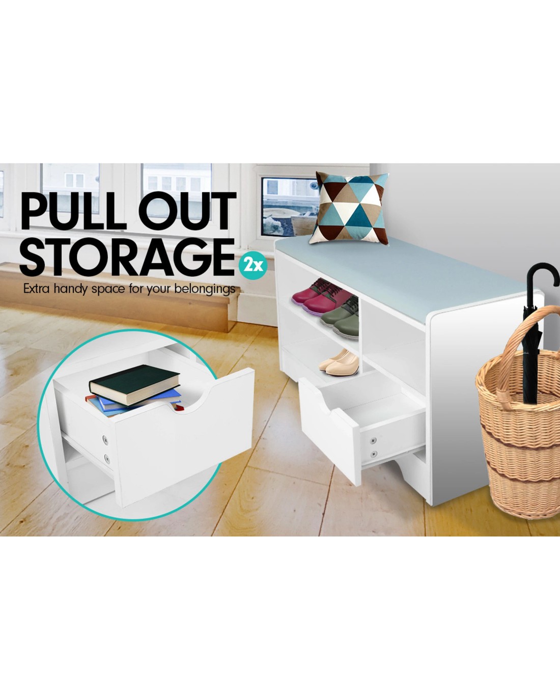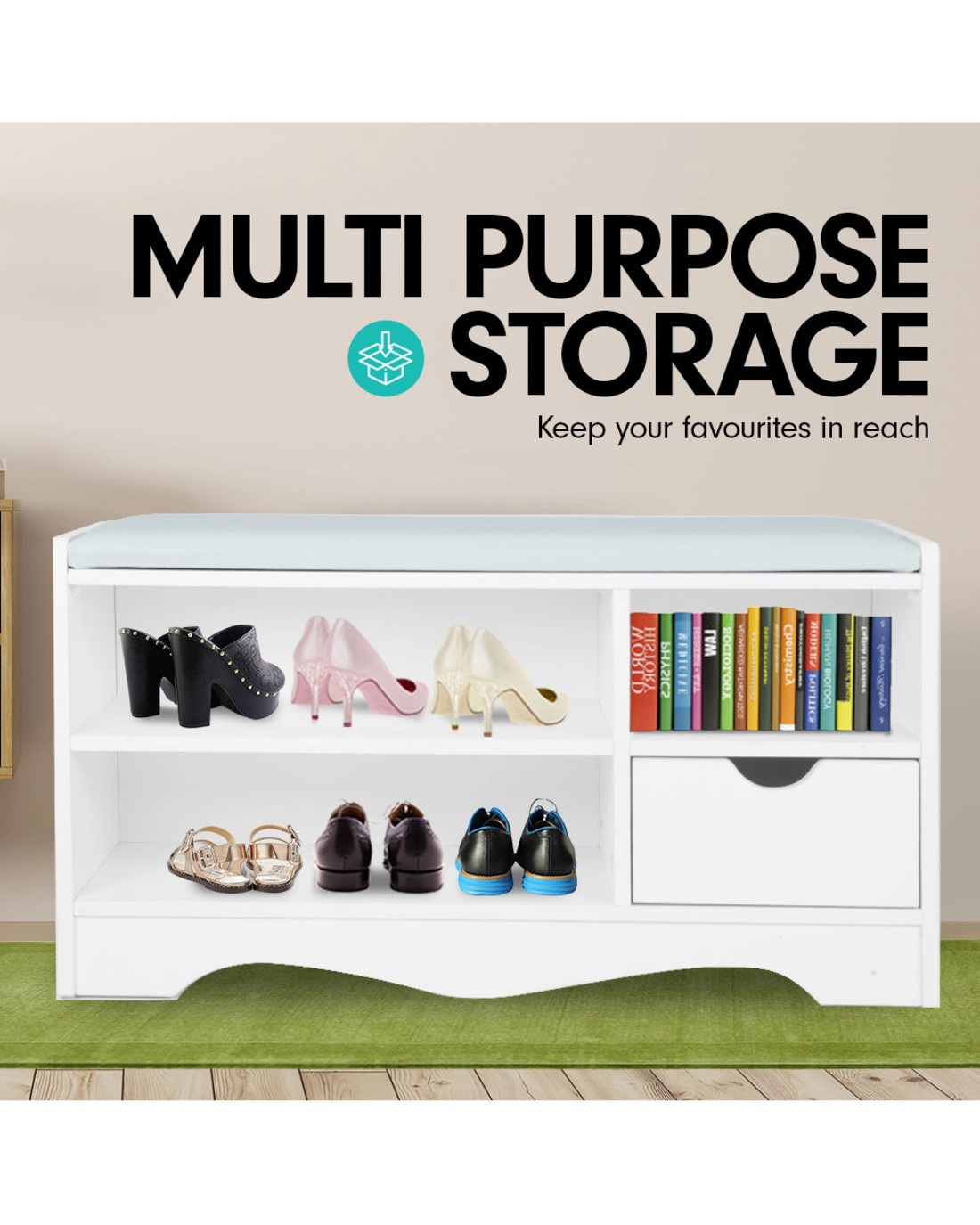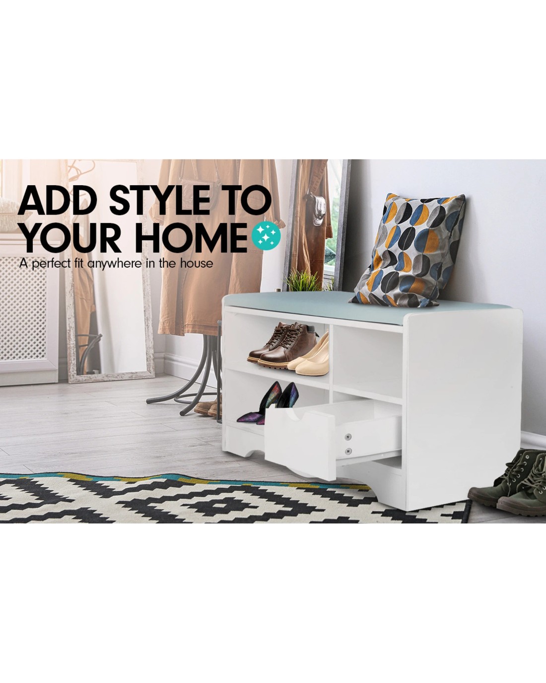 Eliminate the appearance of clutter and create a neat, organized space with this shoe cabinet with padded bench.