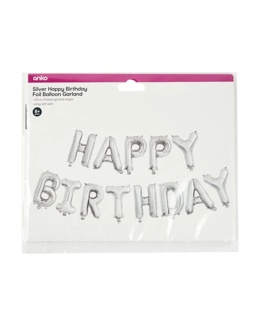 Sold by KmartSilver Happy Birthday Foil Balloon Garland