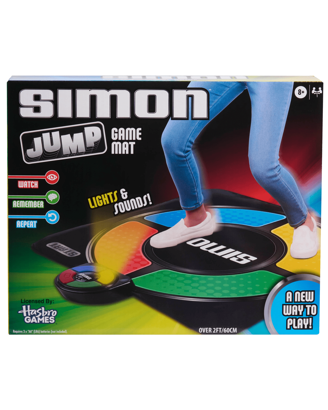 Get up and active when playing this twist on the classic 80s electronic game with Simon Jump Game Mat. Instead of pressing the red, green, yellow and blue buttons, players dance out the patterns on a responsive mat on the floor. To play, turn the game on and press start. Players memorise the sequence of coloured light patterns and sounds displayed on the game console, then repeat with their feet on the mat. Try to beat high scores. To compete, add multiple Simon Jump Game Mats (each sold separately) to host friendly tournaments with friends and family. This nostalgic toy makes a fantastic birthday or anytime surprise for gamers and kids aged 8 years and up.