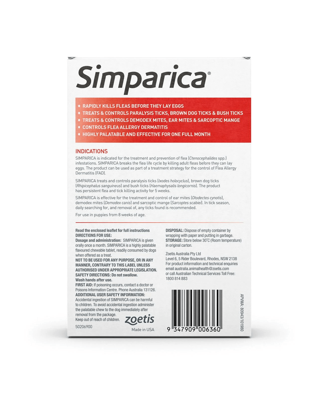 SIMPARICA EXTRA LARGE 40.1-60KG 6S RED - premium pet product from trusted suppliers. For more information feel free to contact our friendly team.