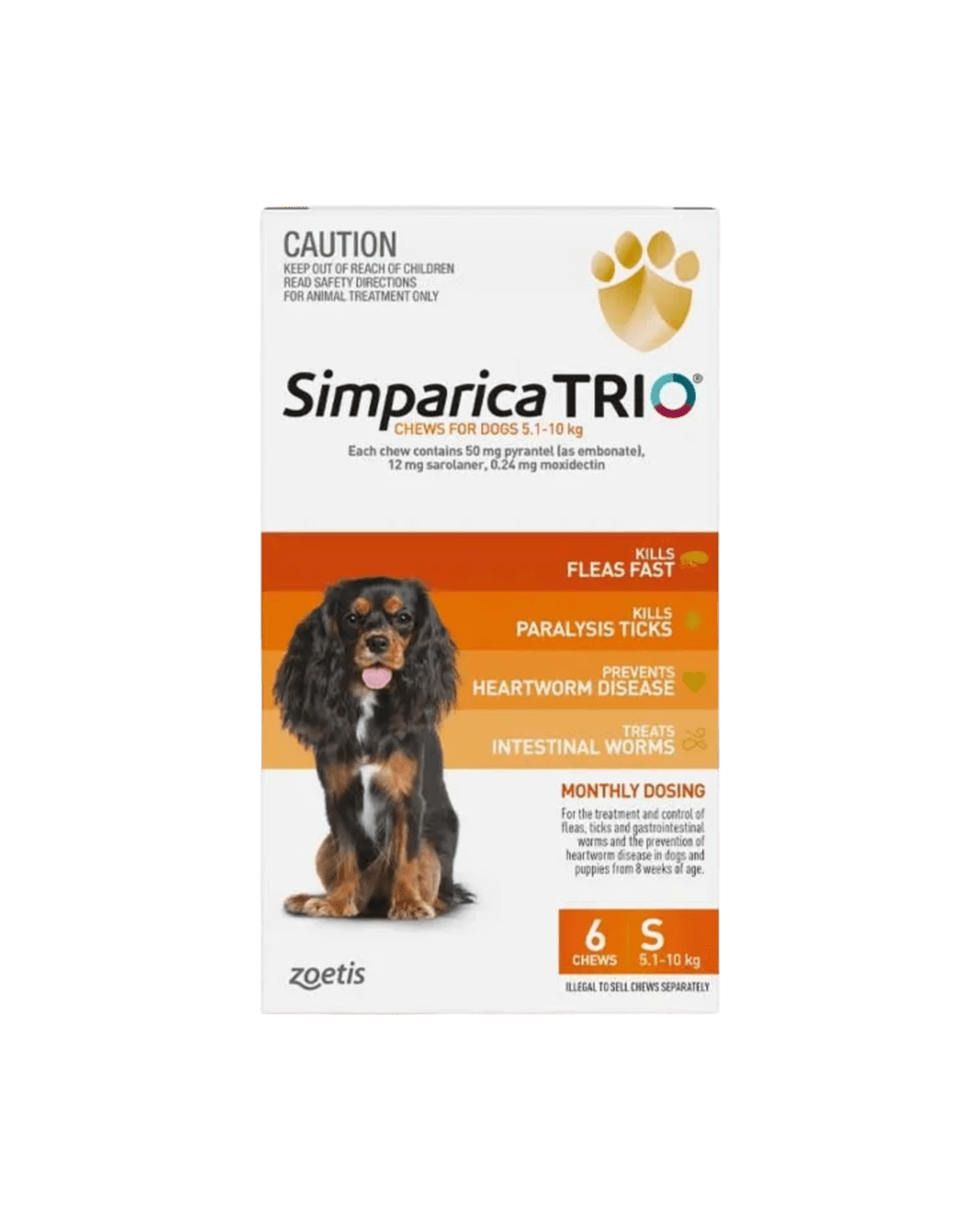 Simparica Trio provides triple protection against fleas and ticks, intestinal worms, and deadly heartworm disease — all in one tasty monthly chew. It contains a unique combination of ingredients, including moxidectin, the same trusted ingredient used by vets to prevent heartworm disease.