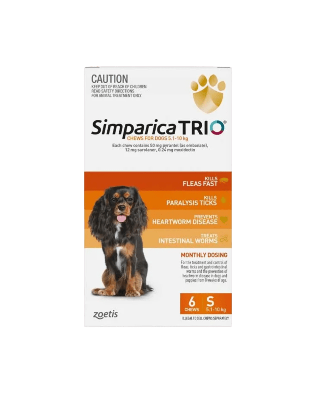 Simparica Trio provides triple protection against fleas and ticks, intestinal worms, and deadly heartworm disease — all in one tasty monthly chew. It contains a unique combination of ingredients, including moxidectin, the same trusted ingredient used by vets to prevent heartworm disease.