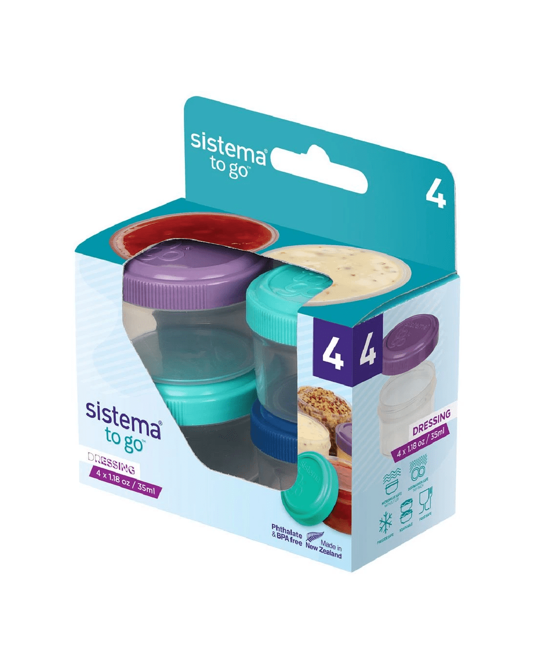 This Sistema Dressing To Go Set is perfect for taking your favourite dressings with you on the go. Each container comes in a handy 35 mL size. Plus, the seal-tight screw-top lids keep your dressings fresh until ready to eat.
