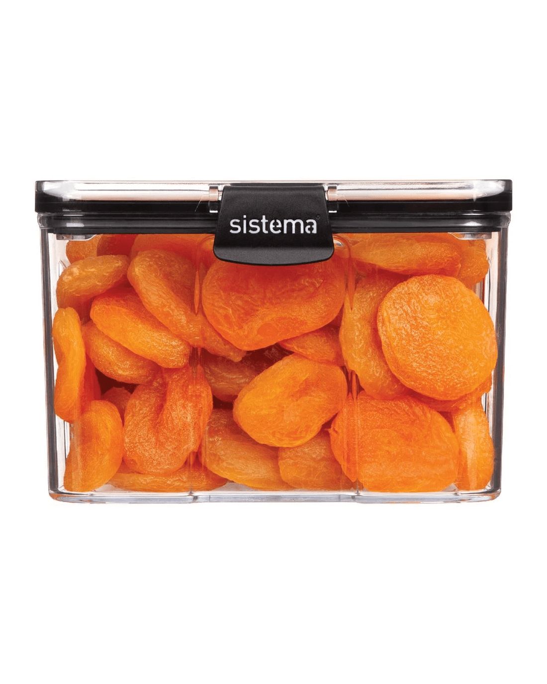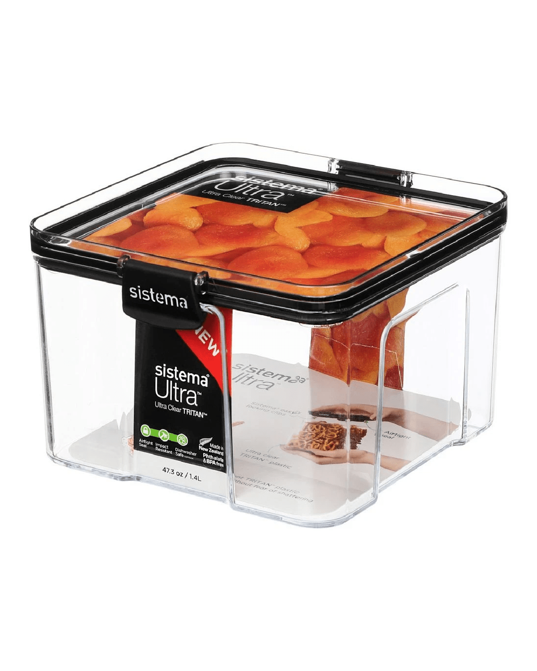 This Sistema Ultra Clear container can be stored perfectly on the countertop, kitchen drawers, pantry and fridge. Made from Ultra clear plastic with glass-like clarity, it's durable, shatter resistant and allows you to easily see the contents of the container. It features a stackable, space-saving design, with an airtight seal and easy-locking clips that helps keep your food fresh for longer.