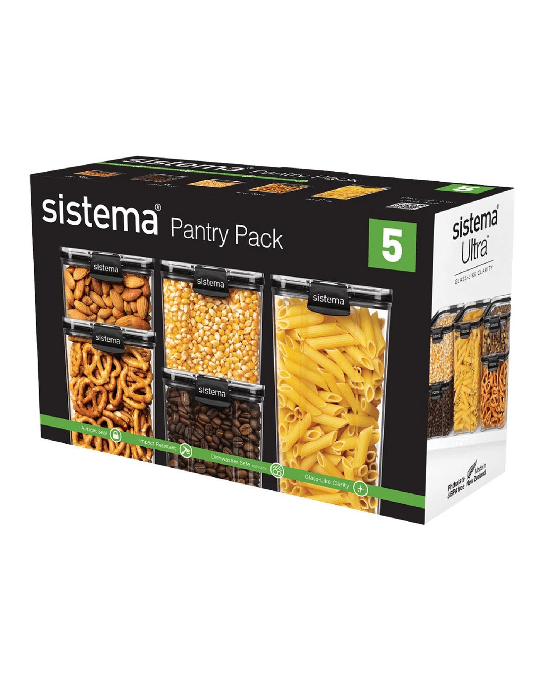 - This pack contains 5 Sistema Ultra Square containers in various sizes and capacities.