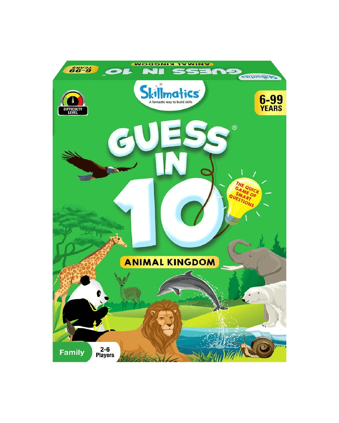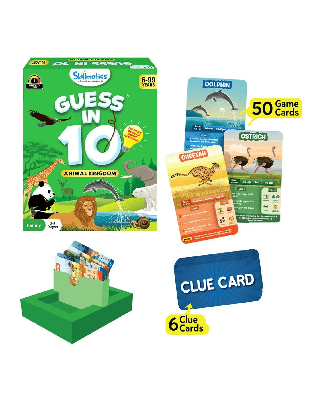 Find hours of entertainment in this Guess in 10 game from Skillmatics. You can ask up to 10 questions to guess the animal on the game card. Think hard, ask intelligent questions, use your clue cards wisely and the be the first player to win 7 Game Cards!