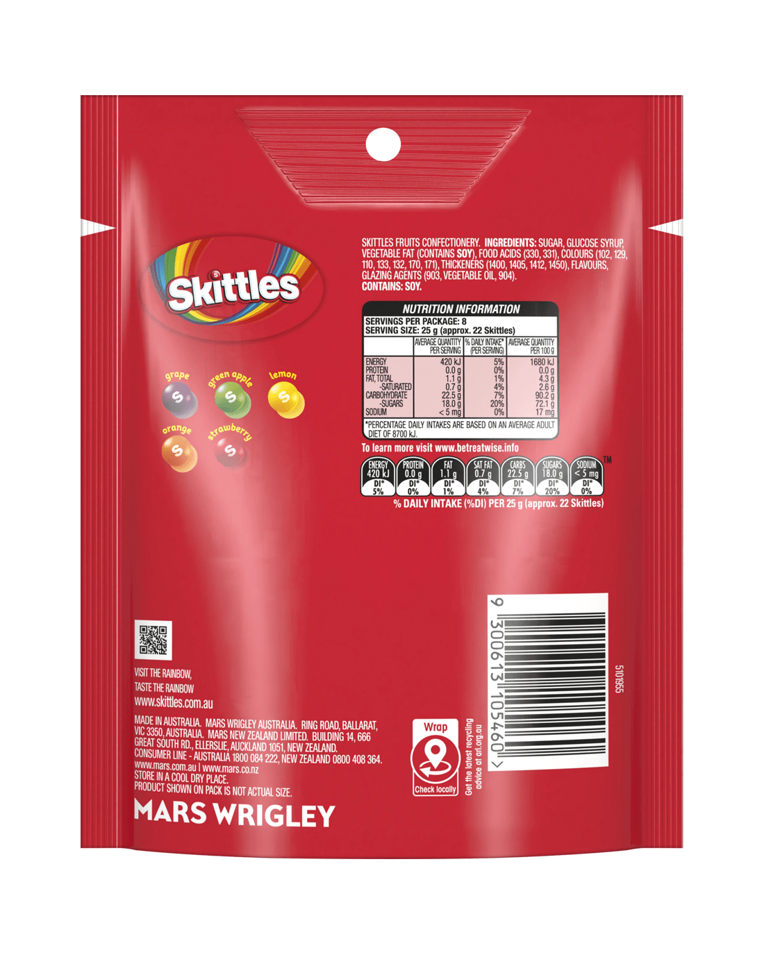 Sold by KmartSkittles Fruits Chewy Lollies Snack and Share Bag 200g