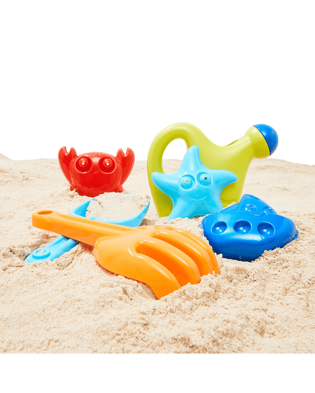 - Includes 1 x shovel, 1 x rake, 1 x watering can and 3 x sand moulds