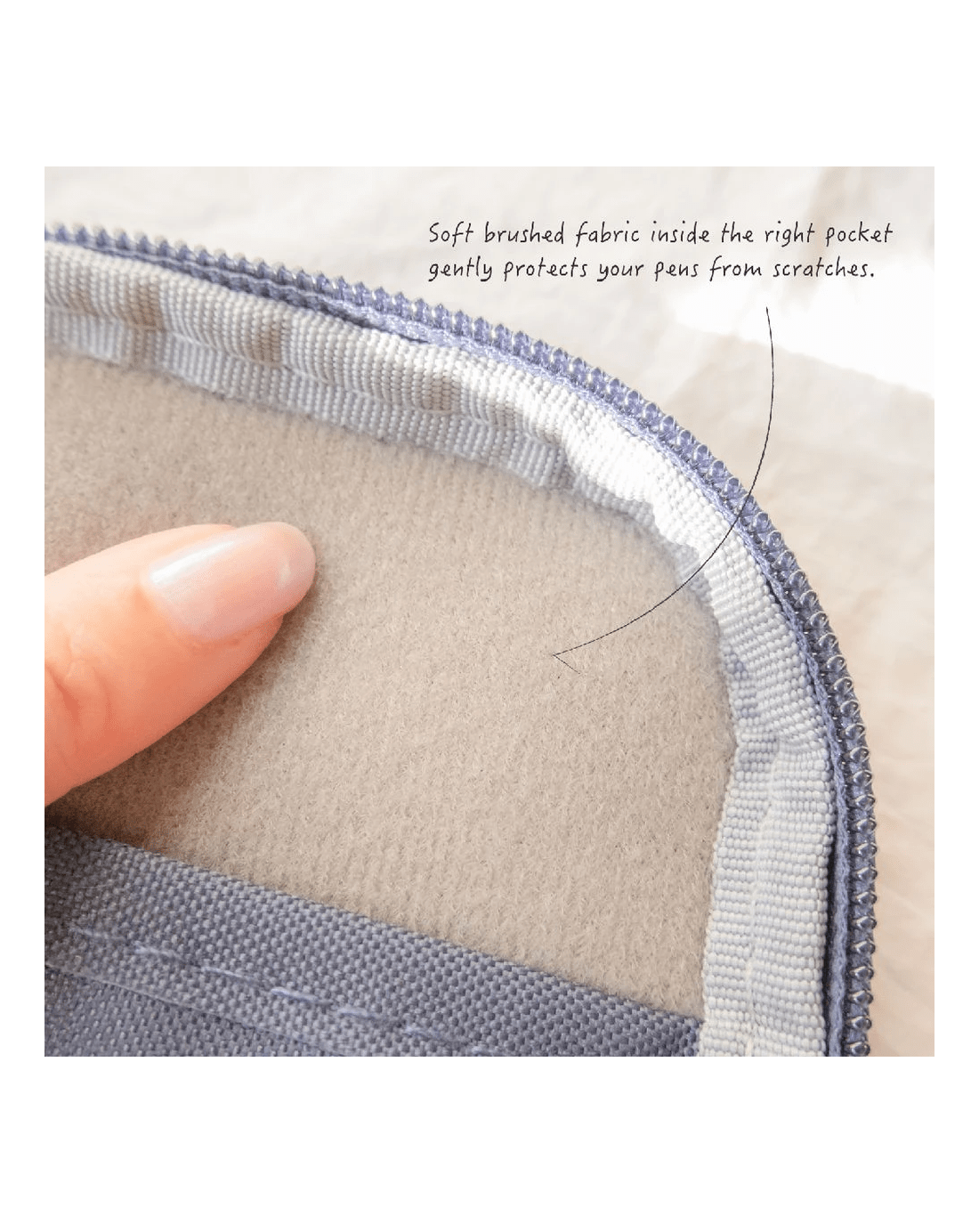 - It closes securely with a zip.